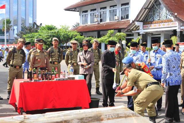 “Kali ini ada 1.337 botol miras berbagai jenis dan merek yang kami musnahkan hasil operasi yustisi yang dilakukan Satpol PP sejak Januari 2018. Operasi yang kami lakukan juga bersama petugas lain dari Polri dan TNI. Jadi hasil operasi gabungan,” ungkap Kasatpol PP usai pemusnahan.