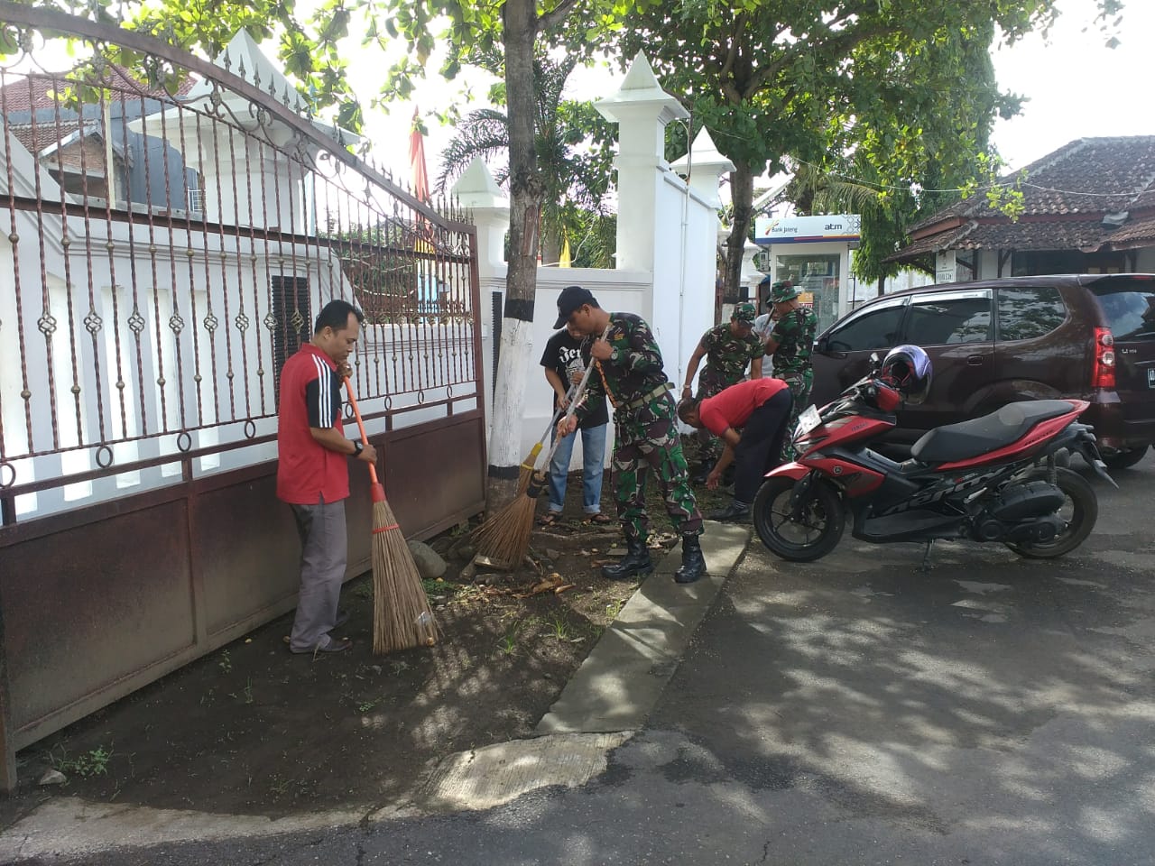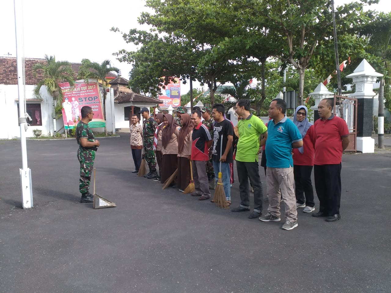 Sukoharjo (03/11/18) Koramil 11 Polokarto dipimpin Pelda Raharjo melaksanakan kegiatan Jum’at Bersih di lingkungan kantor Kec. Polokarto Jl. R. Ngb. Pjonco Pranoto No 8 Dukuh Jatirejo Desa Mranggen Kec. Polokarto Kab. Sukoharjo.