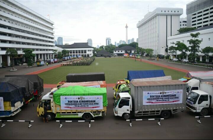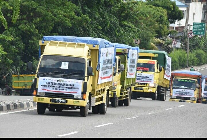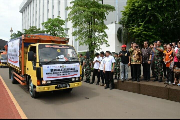 Jakarta (22/12/18) Markas Besar Angkatan Darat (Mabesad) mengirimkan bantuan kemanusiaan kepada warga masyarakat terdampak tsunami Selat Sunda di wilayah Banten dan Lampung sejumlah 28 truk dengan total keseluruhan senilai Rp. 4 Milyar. Demikian disampaikan Kepala Dinas Penerangan Angkatan Darat (Kadispenad) Brigjen TNI Candra Wijaya usai mengikuti acara pemberangkatan pemberian bantuan kemanusiaan di lapangan Mabesad, Jakarta Pusat, Kamis pagi (27/12/2018).