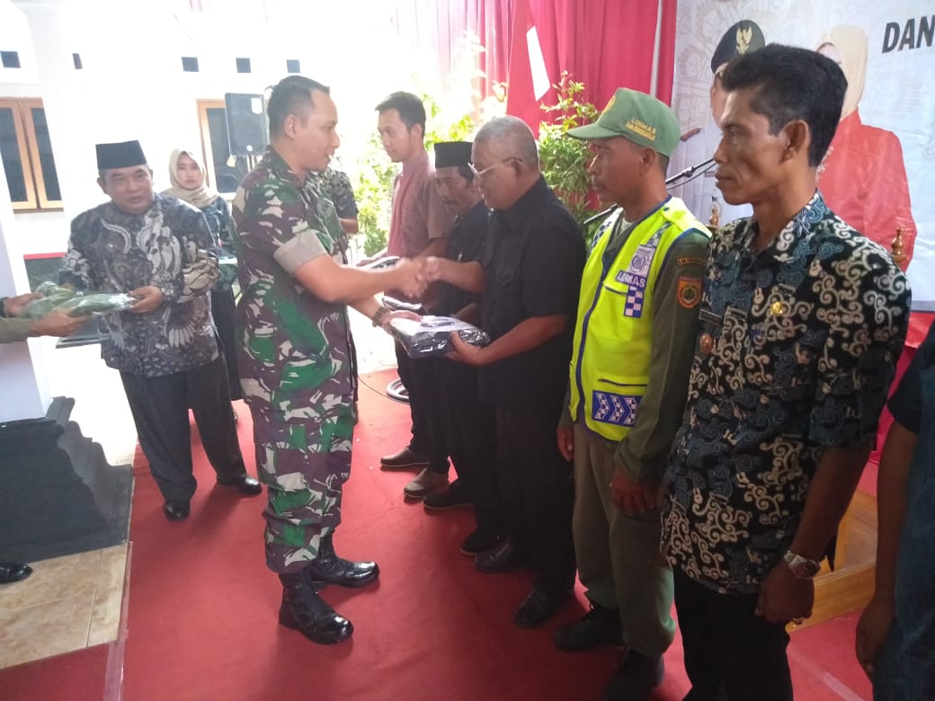 DANDIM 0726/SUKOHARJO DAMPINGI BUPATI BAGI SERAGAM LINMAS & SERTIFIKAT PTSL APBD DI KEC. BULU