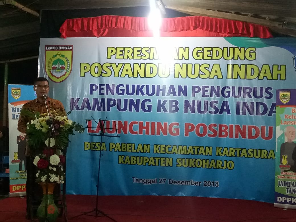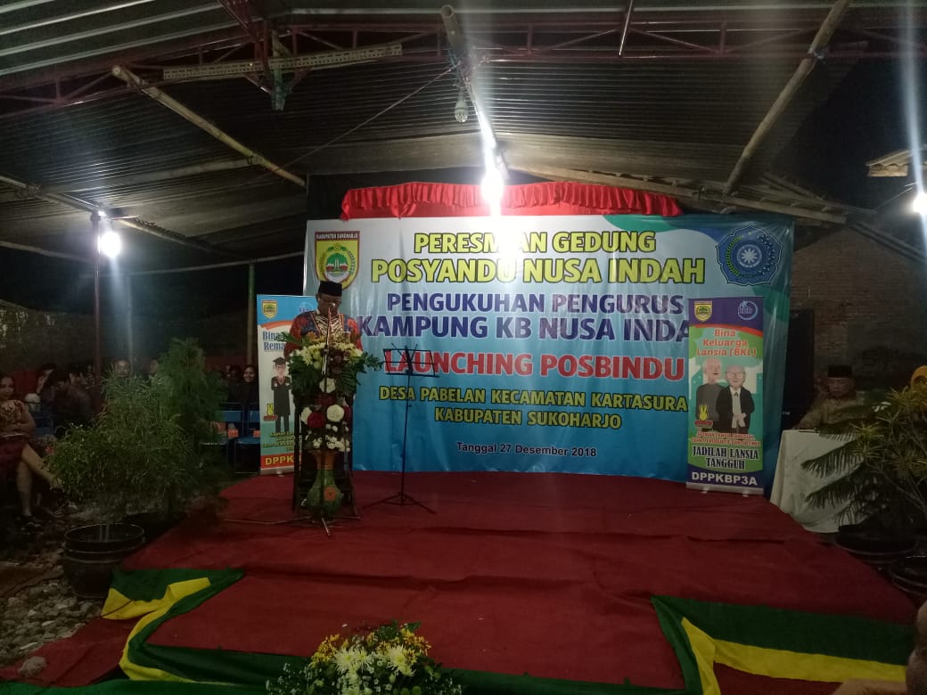 Sukoharjo (28/12/18) Desa Pabelan, Kecamatan Kartasura pada hari Kamis (27/12) ini menggelar 3 acara penting bertempat di Dk. Lemusir Rt 01 Rw 06 Ds. Pabelan, kecamatan Kartasura yaitu Peresmian Gedung Posyandu Nusa Indah, Pengukuhan Pengurus Kampung KB Nusa Indah dan Launching Posbindu desa Pabelan, kecamatan Kartasura.“Gedung Posyandu Nusa Indah ini bisa terwujud semoga bermanfaat bagi masyarakat Desa Pabelan, kita pantas bersyukur atas dasar pertimbangan bahwa supaya Posyandu tidak lagi menempati rumah warga”, kata Kepala Desa Bpk Sri Handoko.