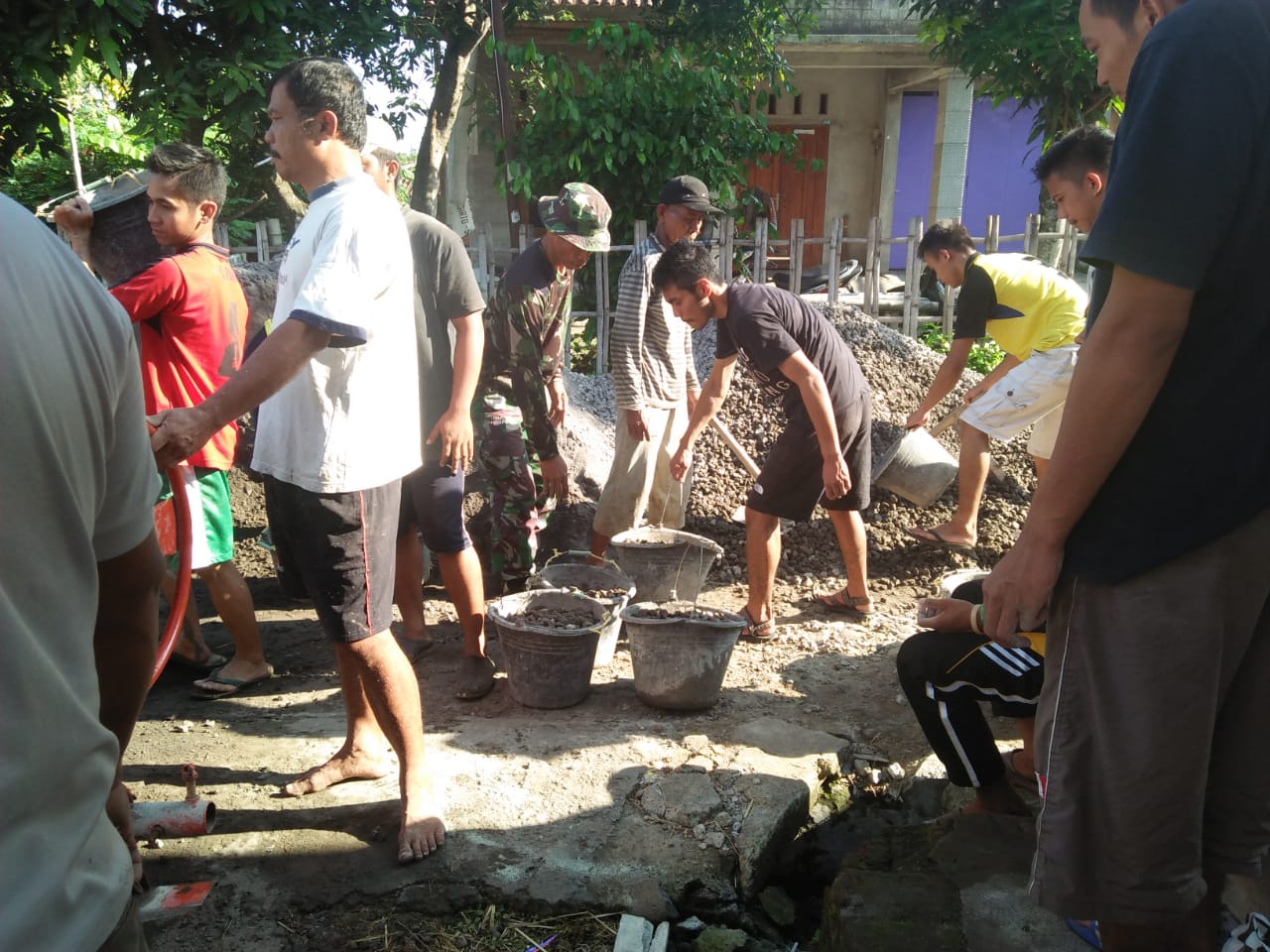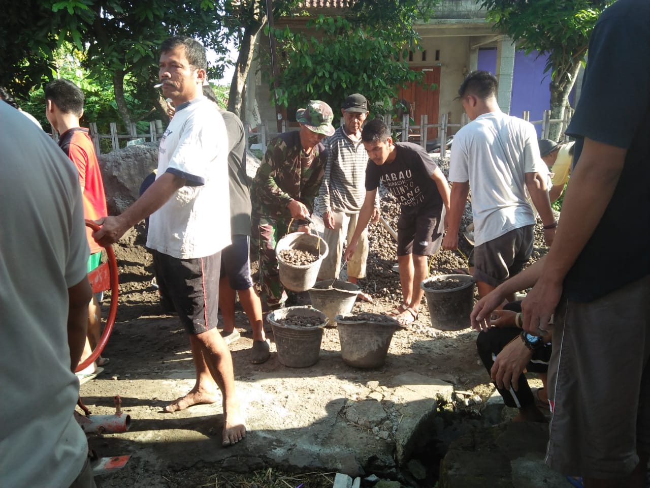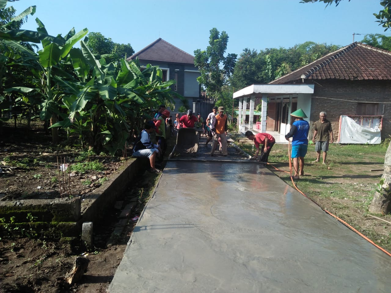 Sukoharjo (07/01/19) Para Warga Dk Sangiran RT 1/4 Ds Mranggen kecamatan Polokarto, Sukoharjo bergotong-royong melaksanakan kegiatan Karya Bakti pengecoran jalan dan pembuatan talud jalan.