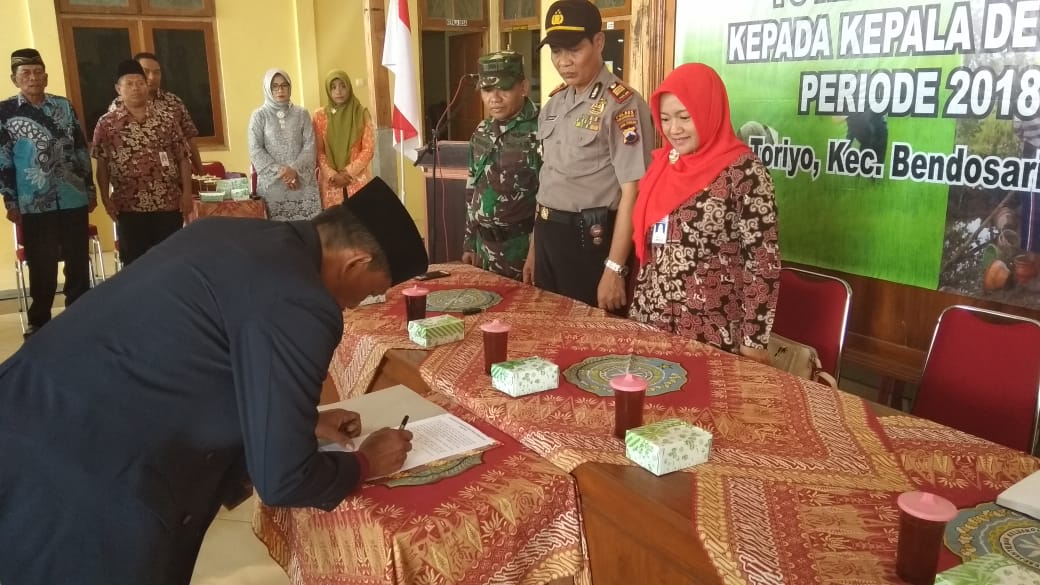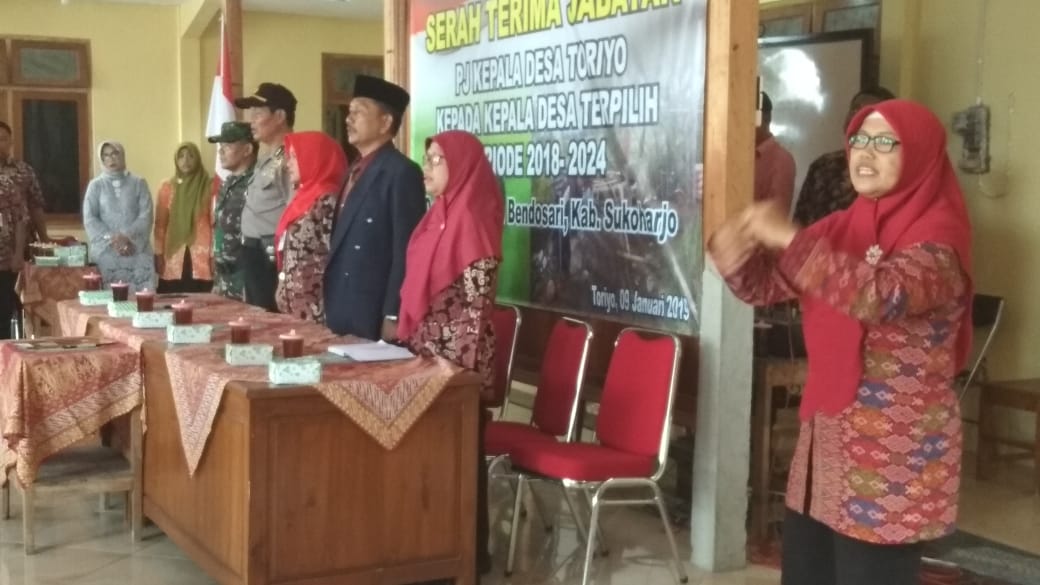 Kegiatan serah terima jabatan Pj Kepala Desa Toriyo kepada Kepala Desa terpilih Periode 2018 – 2024 bapak Supriyanto ini dilaksanakan di Pendopo Balai Desa Toriyo, Bendosari Kabupaten Sukoharjo, pada hari Rabu (09/01) pukul 09.00 wib.