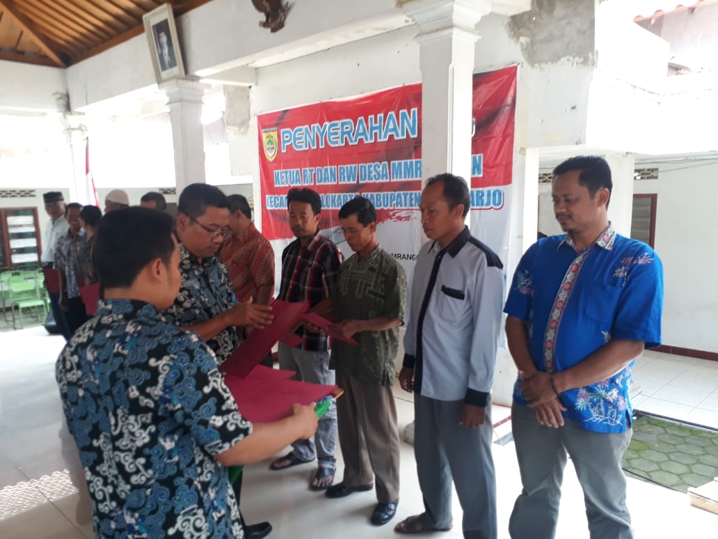 Kepada para ketua RW dan RT agar mendukung dan kerjasamaa bersama sama seluruh warga masyarakat dalam memajukan Ds.Mranggen Sebentar lagi kita bangsa Indonesia akan menghadapi pesta demokrasi, Kades berharap di desa Mranggen agar situasi tetap aman & kondusif serta lancar dalam pelaksanaannya. Setelah sambutan Kades kegiatan dilanjutkan dengan Penyerahan SK kepada Ketua RW dan RT se-Ds.Mranggen dan ditutup dengan do’a oleh bapak Sarmuji.