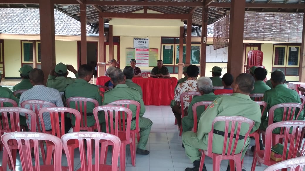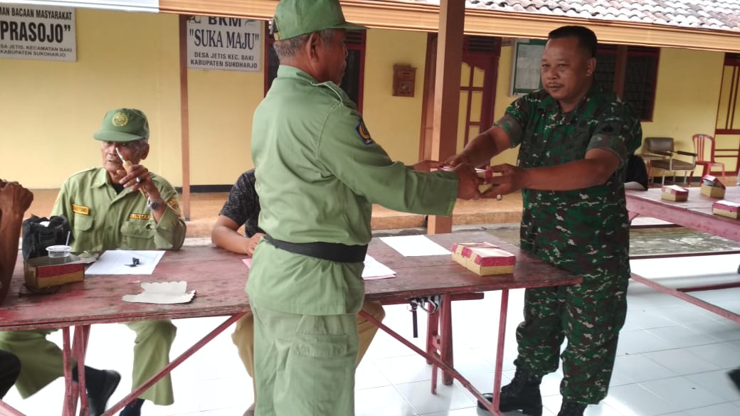 Sukoharjo (22/01/19) Bertempat di Balai Desa Jetis, Kecamatan Baki, Sukoharjo Babinsa Koramil 08 Baki wilayah desa Jetis Serda Karsono menghadiri undangan dari kepala desa Jetis, dalam rangka peremajaan anggota Limas dan pembagian seragan Limas.Kegiatan dilaksanakan pada hari Senin (21/01) pukul pukul 16.30 wib dihadiri sekitar 40 orang diantaranya Sekcam Baki Bpk Agus Eka Raharja .SE. M.M, Kasi Trantib kecamatan Baki Bpk Bambang .SE, Kepala desa jetis Bpk Drs. Ikhsanudin, Babinsa desa Jetis Serda Karsono, Babinkamtibmas desa jetis Brigadir Eli Endi Pranoto, Perangkat desa Jetis, anggota Linmas desa Jetis.