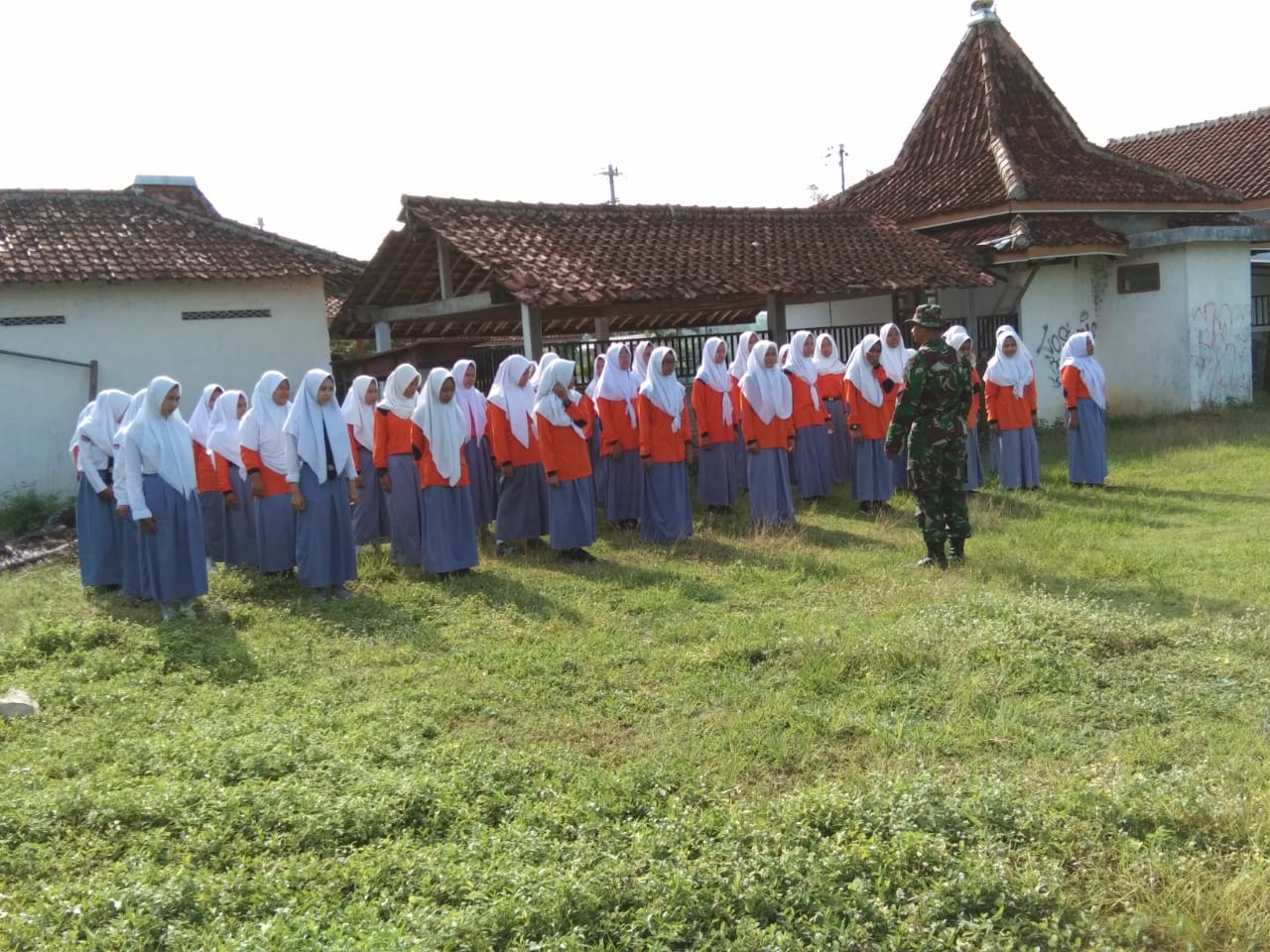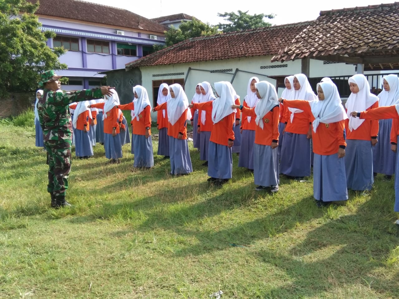 Tampak Serka Sugiono didampingi oleh Koptu Lilik bergantian memberikan aba-aba mulai dari aba-aba petunjuk, peringatan dan pelaksanaan disertai dengan contoh agar siswa secara mudah menerima materi dan mampu melaksanakan kegiatan secara serempak dalam hubungan peleton. Diharapkan dengan adanya pelatihan PBB ini, setelah siswa memahami dan mengerti akan pentingnya PBB maka siswa akan terbentuk karakternya untuk menjadi siswa yang disiplin mematuhi tata tertib dan ketentuan yang berlaku baik di sekolah maupun diluar sekolah,