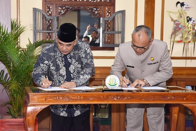 SUKOHARJO-Pemerintah Kabupaten Sukoharjo bersepakat menjalin kerja sama dengan Kejaksaan Negeri Sukoharjo dalam hal penanganan masalah Hukum Bidang Perdata dan Tata Usaha Negera (TUN) yang dinyatakan dalam penandatanganan nota Kesepakatan Bersama (MoU) antara Bupati Sukoharjo H. Wardoyo Wijaya SH, MH, MM dan Kepala Kejaksaan Negeri (Kajari) Sukoharjo Tatang Agus Vallyanto, S.H, M.H di lobby Kantor Bupati Sukoharjo, Selasa (22/1).