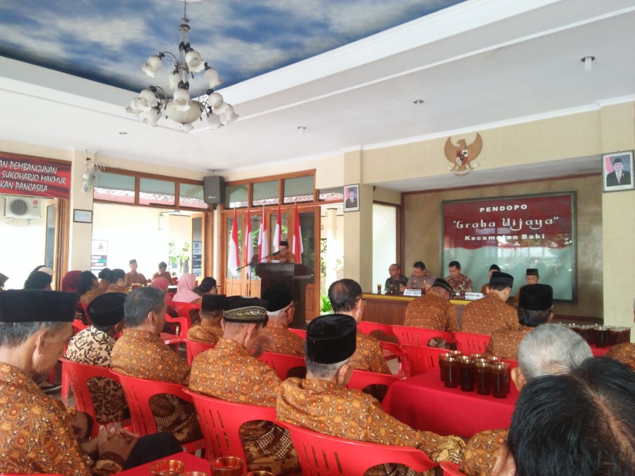 Danramil 08 Baki Kapten Inf Suroso melaksanakan Komsos hadir dalam kegiatan bersama sekitar 80 orang undangan lainnya. Diantaranya hadir bapak Roni Wicaksono,S.STP.MM. (Camat Baki), Akp.Dani Herlambang,SP (Kapolsek Baki), bapak Sutomo (Ketua PWRI Kec.Baki).