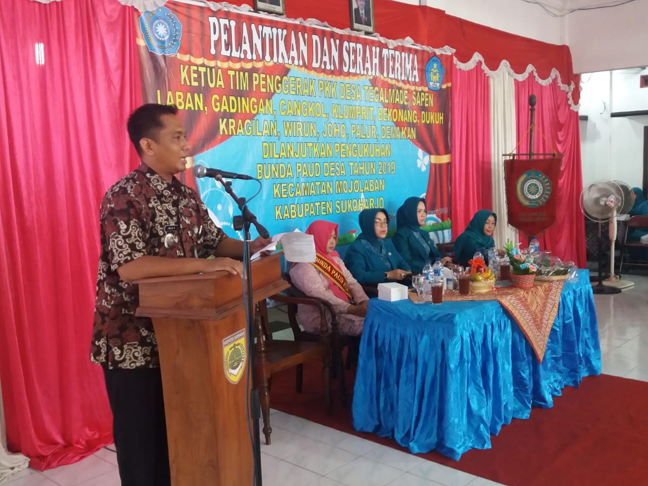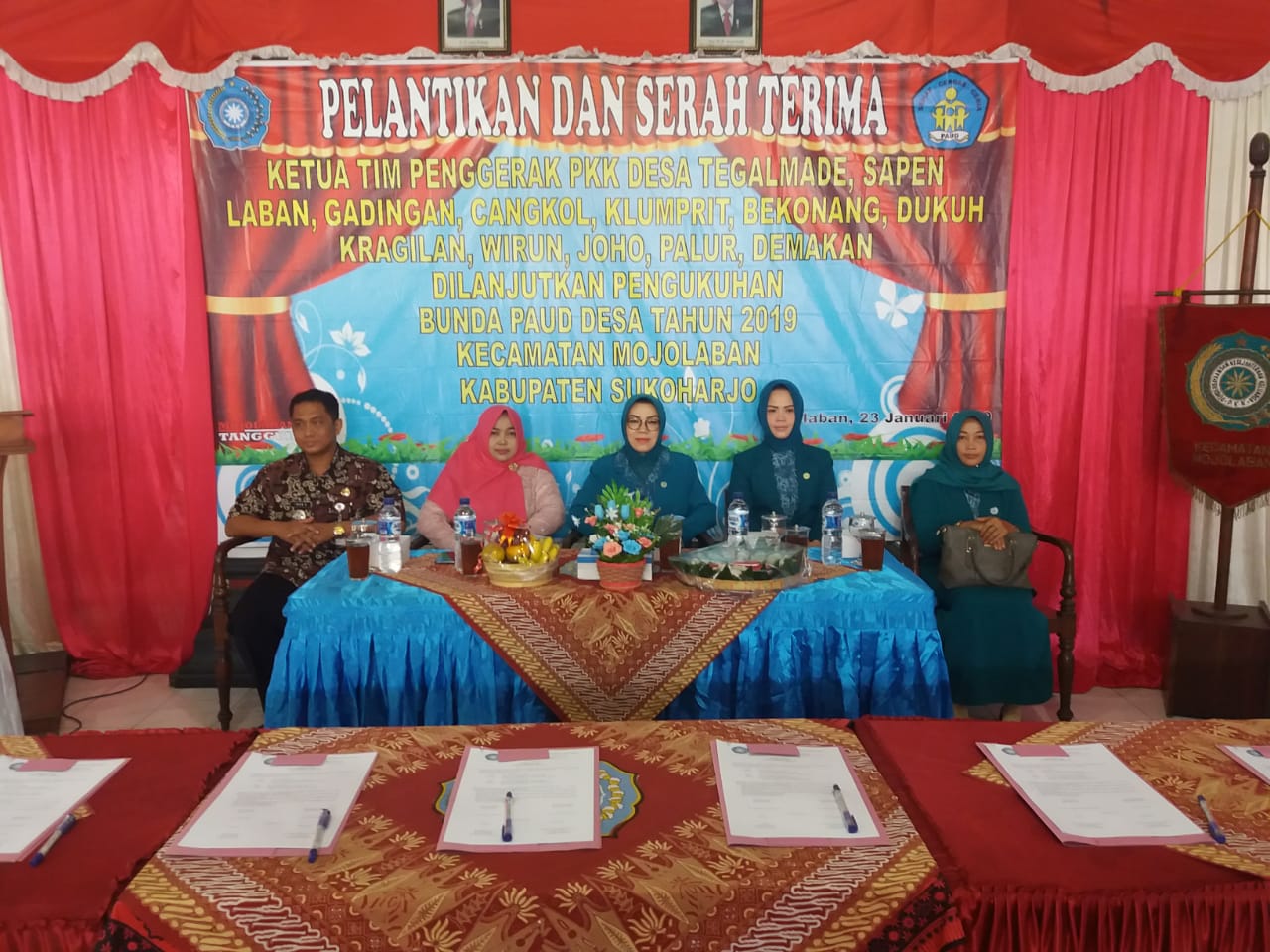 Sukoharjo (24/01/19 Pelantikan dan serah terima Ketua Tim Penggerak PKK Desa se Kecamatan Mojolaban dilaksanakan di Pendopo Kantor Kecamatan Mojolaban, Kabupaten Sukoharjo pada hari Rabu (23/01) pukul 08.00 wib.