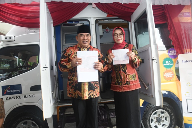 Dalam kesempatan ini pula, Bupati menyerahkan kunci mobil Samsat Keliling dari Pemerintah Kabupaten Sukoharjo yang dipinjam pakaikan kepada UPPD Kabupaten Sukoharjo dengan menandatangani berita acara.