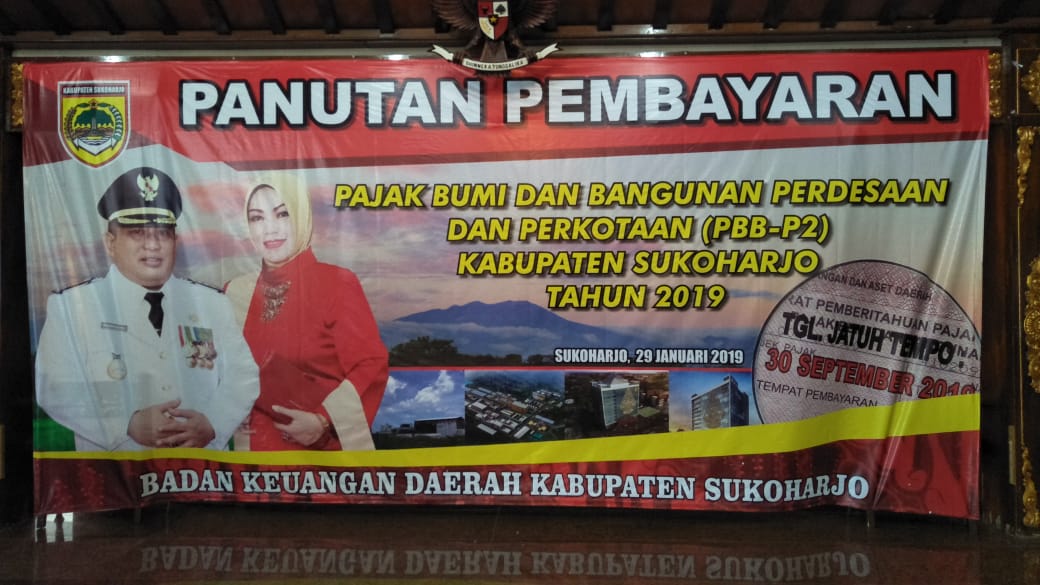 Pembayaran Pajak Bumi dan bangunan Perdesaan dan Perkotaan ( PBB-P2 ) tahun 2019, harus sudah bisa diterima masyarakat dibulan januari 2019 tujuannya agar masyarakat sedini mungkin bisa melakukan pembayaran/pelunasan PBB-P2 dan bisa memanfaatkannya untuk berbagai kepentingan lainnya. Kepada camat dan kepala desa/lurah se kab. Sukoharjo untuk dapat menangkap peluang intensifkan sosialisai sadar pajak dan penagihan kepada wajib pajak.