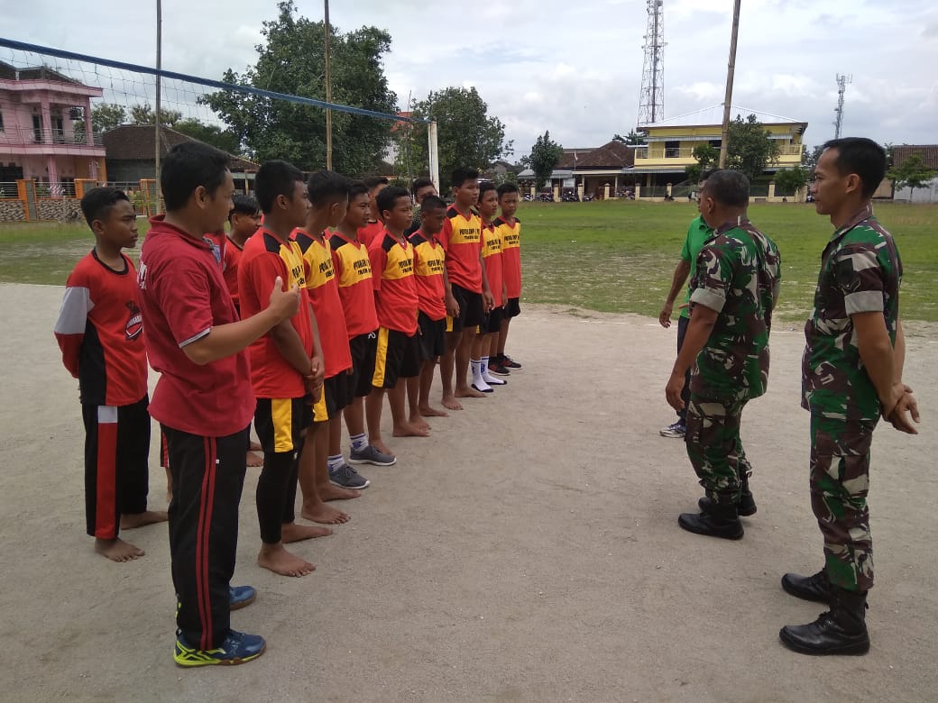 Sukoharjo (13/02/19) Sertu Giyadi dan Serda Imam (Babinsa Koramil 11 Polokarto) pada hari Selasa (12/02) mendampingi guru Olah Raga SMPN 1 Polokarto memberika support dan arahan kepada Tim Bola Volley yang akan mengikuti kegiatan Popda Kabupaten Sukoharjo.Dikatakan oleh Babinsa dalam pengarahannya kepada tim agar tetap semangat dan penuh dedikasi terhadap SMPN 1 polokarto. Persiapkan dengan baik, jaga kesehatan, giatkan latihan karena persiapanmu adalah 50 persen keberhasilanmu. Pengarahan ini dilaksanakan disela-sela latihan di lapangan bola volley desa Mranggen dihadiri para anggota tim, pelatih dan guru.