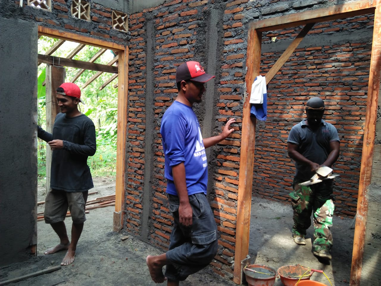 Babinsa melaporkan progress pekerjaan bedah rumah ini kira-kira sudah mencapai 55 % karena dinding sudah naik masih dalam proses pengacian, dan mulai memasang kaso-kaso untuk penutup atap. “Setelah pekerjaan dinding dan atap selesai, kita akan lanjutkan pemasangan pintu, jendela dan menyelesaikan area lantai dan finishing di tempat-tempat lain”, kata Danramil.