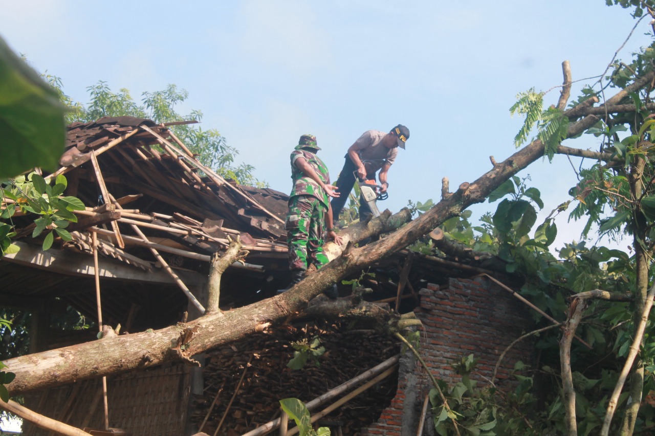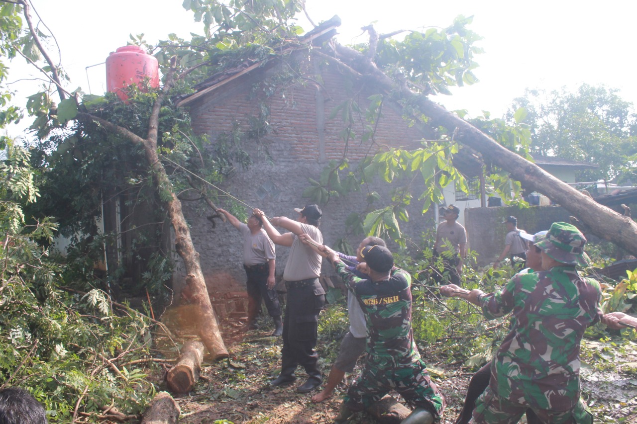 SINERGI TNI, POLRI,BPBD, SAR, PMI, TAGANA DAN RELAWAN KAB. SUKOHARJO SIGAP BANTU MUSIBAH ANGIN PUTING BELIUNG DI DESA BENDOSARI