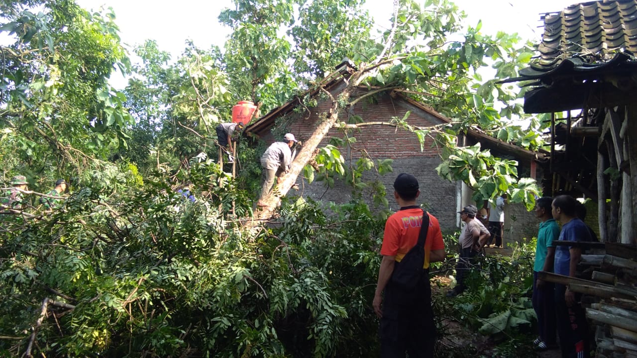 Sukoharjo, (16/02/2019) Angin Puting beliung menerpa wilayah Dukuh Porosido RT 0106 dan Dukuh Plosokerep RT. 0105 Desa Bendosari Kec. Bendosari pada hari Jumat (15/02) pukul 14.30 wib, yang mengakibatkan pohon tumbang dan menimpa rumah warga.Saksi mata Bp. Didik warga Dk Plosokerep Rt. 02/05 menuturkan angin datang dari arah timur menuju barat dengan kecepatan tinggi serta di barengi dengan hujan yang sangat deras saya waktu itu saksi berada di teras rumah, hanya bisa berdoa sambil melihat berapa pohon di sekitar rumahnya patah serta melihat genteng dan atap asbes rumah tetangga bertebangan, angin berhembus sekitar 10 menit setelah hujan mulai reda pak Didik keluar melihat sekitar rumah ada satu bohon yang menimpa dapur.