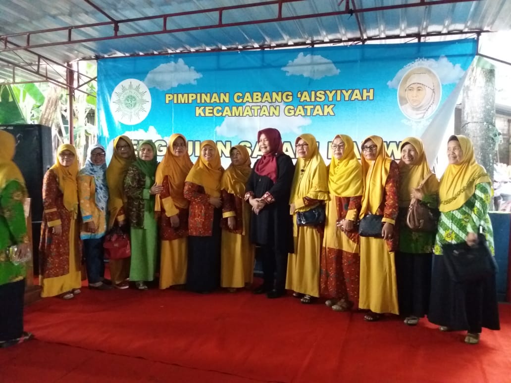 Sementara itu Dra. Sumi Rahayu M. Hum ( Camat Gatak ) menyampaikan harapan semoga kegiatan ini Istiqomah terus, kepada seluruh jamaah pengajian Aisyah untuk dalam pengajian ini dan berikutnya agar selalu menjaga kekompakan kerukunan yang ada di Kecamatan Gatak ini karena selama ini yang saya lihat selalu kompak.