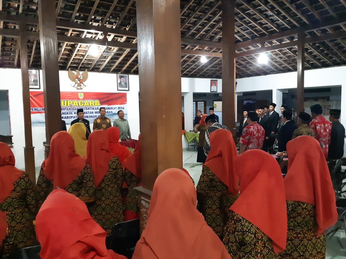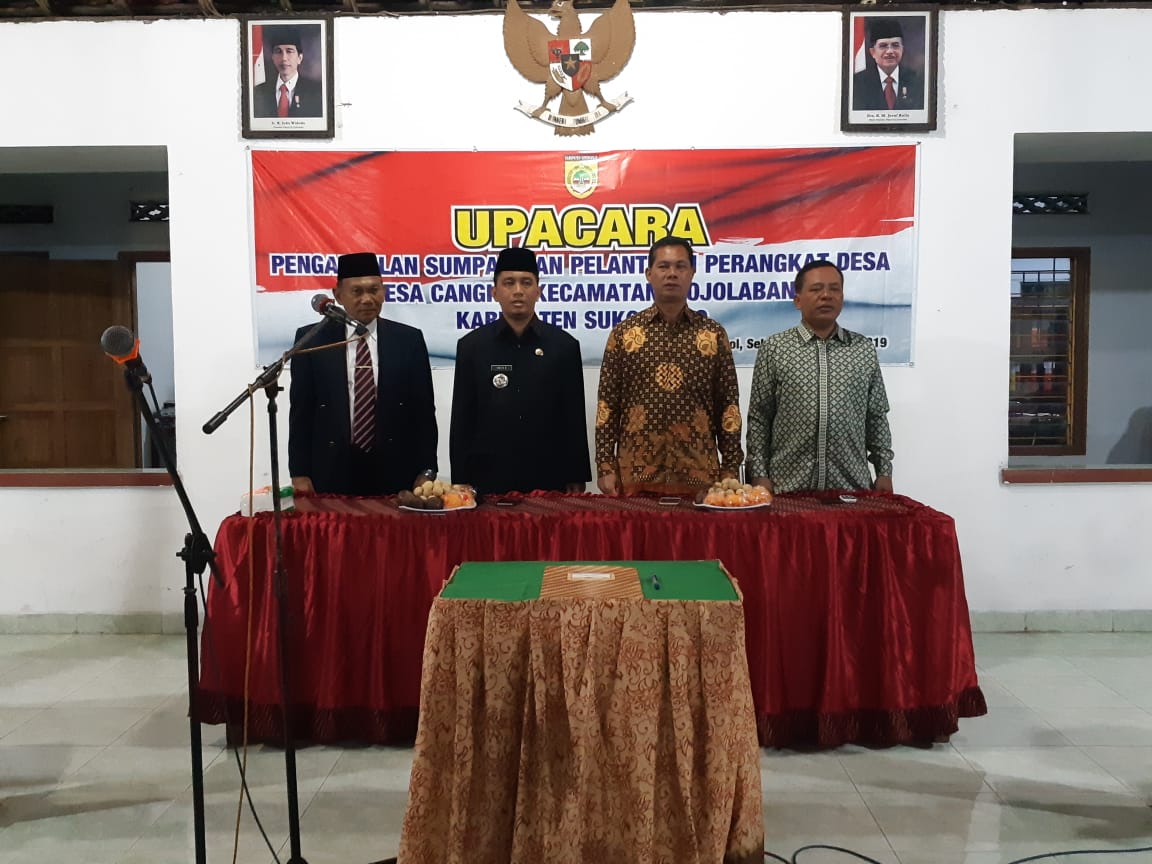 Sukoharjo (21/02/19) Danramil 10 Mojolaban Kapten Inf Sunarto pada hari Selasa (19/02) pukul 20.00 sd 22.00 wib menghadiri pelantikan dan mutasi peralihan dari jabatan lama ke jabatan baru perangkat desa Cangkol bertempat di aula balai desa Cangkol Kec Mojolaban.Kegiatan dibuka dengan menyanyikan lagu Indonesia Raya, Pengambilan sumpah oleh Kepala Desa, Penandatanganan Skep jabatan, Sambutan Bpk Iwan Setiyono S STP M. Hum (Camat mojolaban), Sambutan Kades Cangkol, Pemberian ucapan selamat dan pembacaan Doa.