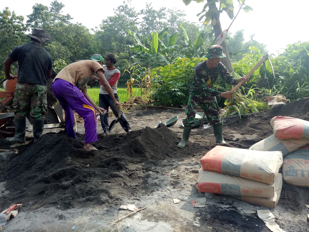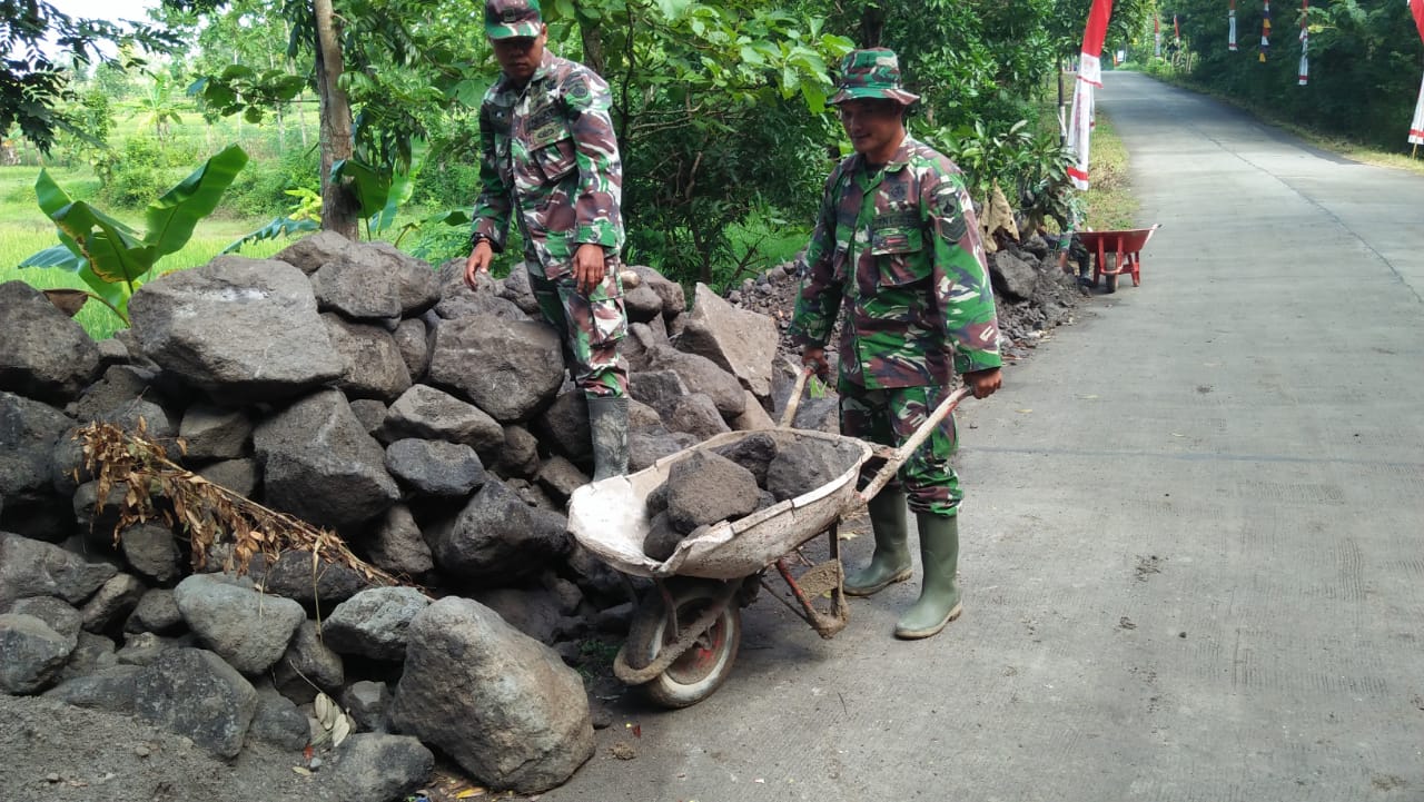 Sukoharjo (26/02/19) Usai pelaksanaan pembukaan TMMD Talud REG ke-104 di desa Celep, Nguter, Sukoharjo material untuk pembangunan langsung didrop ke lokasi pembuatan Talud dari Dk. Celep sampai Dk. Sambirejo. Talud tersebut dibuat dengan ukuran P. 328 m x L. 0,3 m x T. 1,5m.