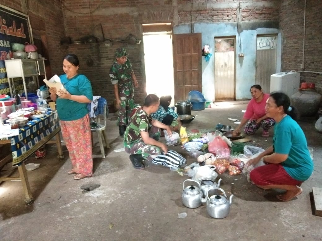 Salah satu contoh ditunjukan oleh ibu Marsi dan ibu-ibu warga desa khusunya warga Dukuh Sambirejo RT 02/05, dimana setiap hari menjadi juru masak untuk makan sehari-hari bagi prajurit yang tengah melakukan pembangunan di desanya. Mereka tidak merasa canggung ataupun terbebani meski dengan kehidupan sehari-hari yang sederhana serta pekerjaan suami sebagai petani dengan penghasilan yang pas-pasan juga berperan sebagai ibu bagi anak-anaknya. Ibu Marsi masih dapat menyempatkan diri membantu memasak makanan ala kadarnya untuk anggota Satgas TMMD Reguler Ke-104 Kodim 0726/Sukoharjo. “ Saya senang karena TNI datang bangun desa kami, jadi saya semangat waktu memasak untuk bapak- bapak tentara yang tinggal di rumah kami,” ungkapnya.