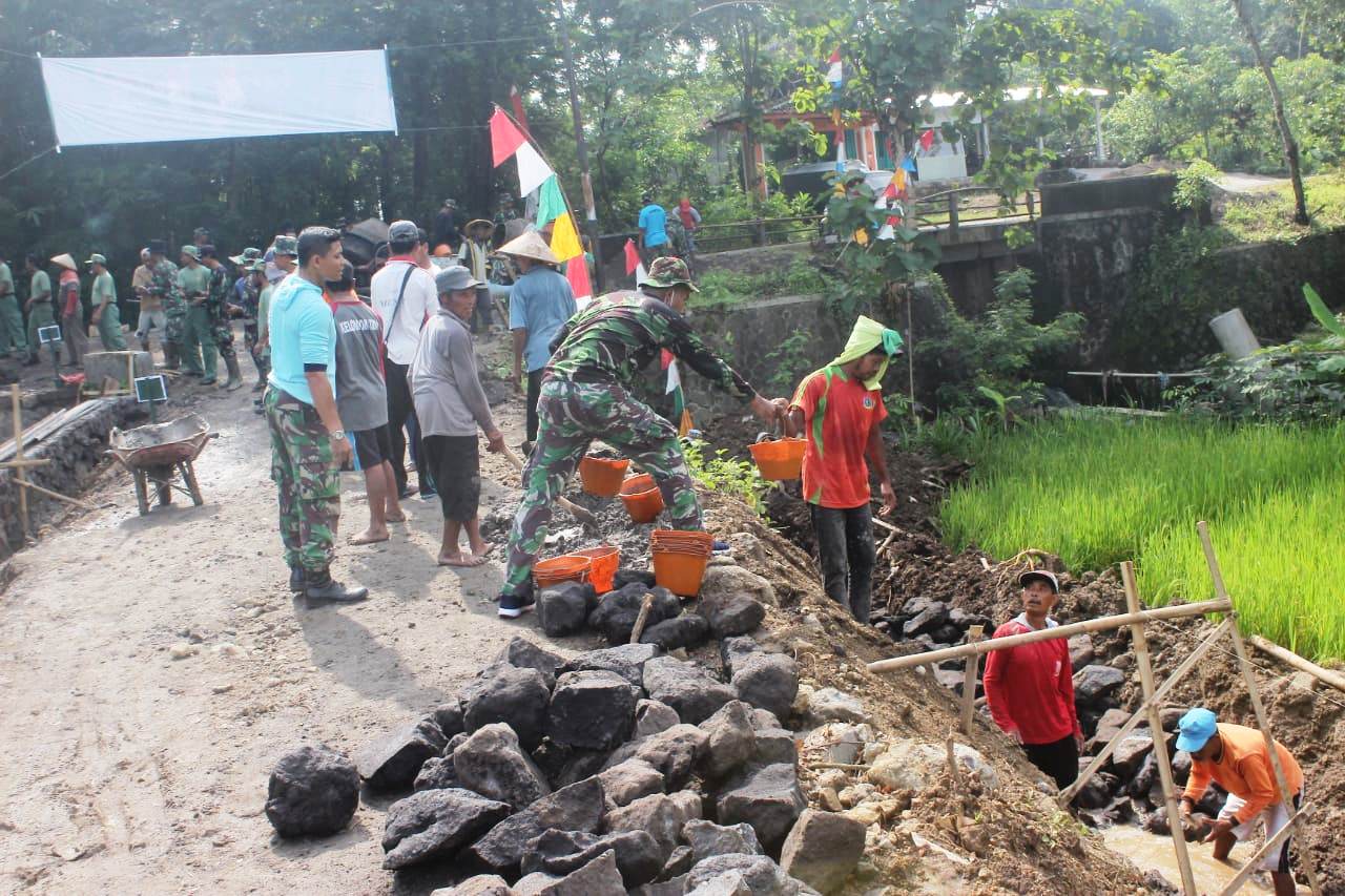 Pembuatan talut jalan sepanjang 101 meter merupakan salah satu program pekerjaan fisik TMMD. Sebelumnya kondisi jalan sempit dan masih berupa jalan setapak kalau musim hujan seperti saat ini keadaan licin sehingga membahayakan pakai jalan.