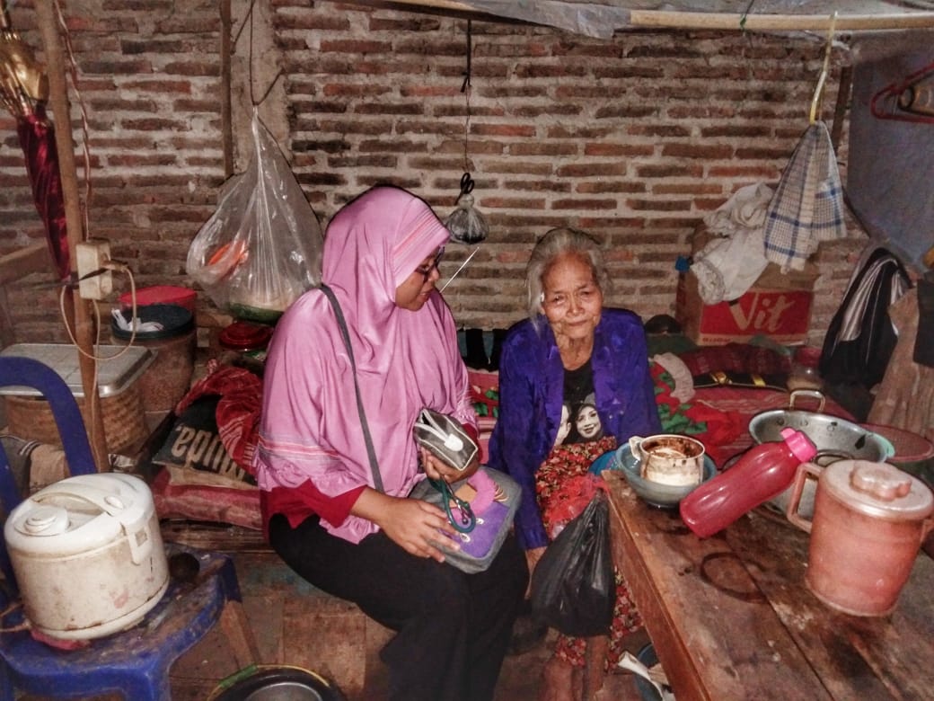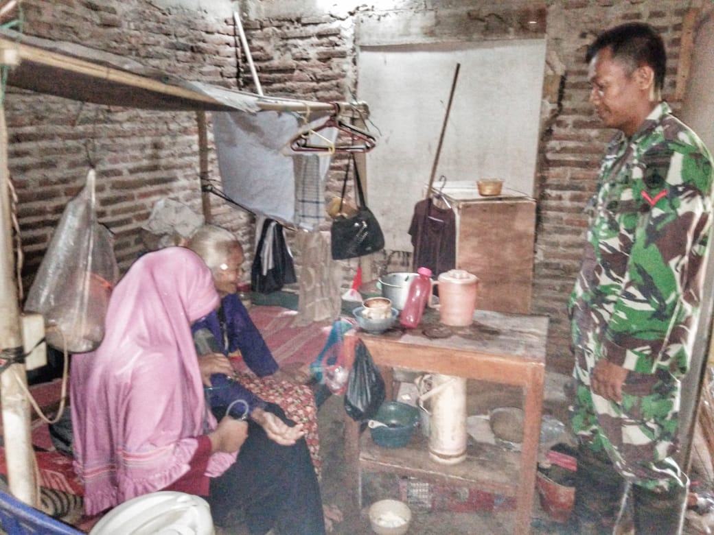 Mbah Marmi 75 tahun di usia yang sudah senja sudah tidak bisa berjalan karena sakit sehingga aktivitas sehari-hari dilakukan dengan ngesot atau merangkak pelan. Menyaksikan itu, Kopda Nur Hantoro tergerak menghibur mbah Marmi selanjutnya mengajak salah satu petugas kesehatan desa Celep untuk memeriksa kesehatan dari mbah Marmi. “Alhamdulillah meski dengan keterbatasan, mbah Marmi tensi darahnya normal dan tidak ada keluhan penyakit yang lain,” ujar ibu Ningsih petugas kesehatan yang memeriksa tekanan darah mbah Marmi.