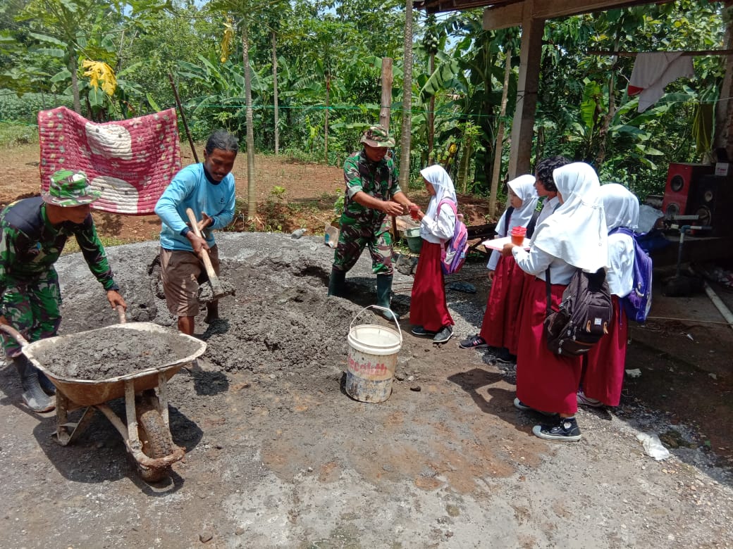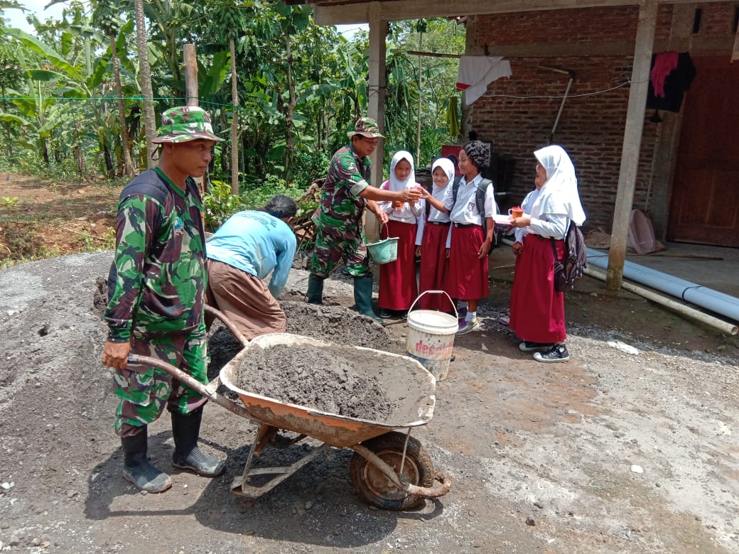 Pelajar SDN 2 Celep Antar Minuman ke Satgas TMMD Reguler Ke-104 TA 2019