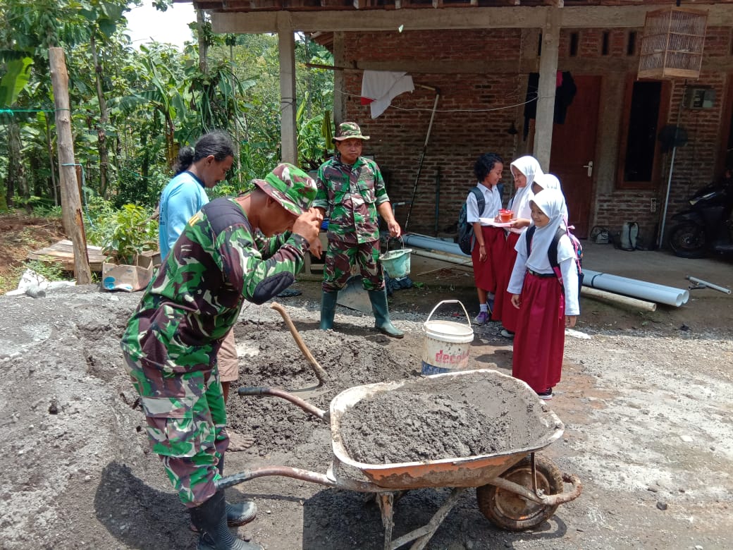 Sukoharjo (05/03/2019) – Pelajar SDN 2 Celep tampak antusias membawakan air minum untuk personil Satgas TMMD dan masyarakat yg melaksanakan pekerjaan pembuatan jamban di rumah bapak Paidi Dukuh Sambirejo RT 03/RW 05 Desa Celep.