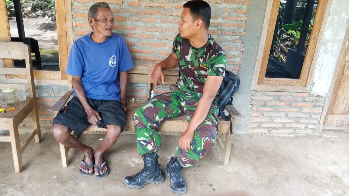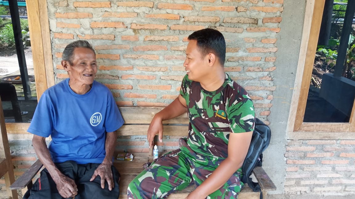 Serda Mardanus di waktu istirahat menyempatkan bersilaturahmi dengan salah satu warga yakni mbah Ranto Wiyono (85) warga Dukuh sumberagung Desa Celep Kecamatan Nguter Kabupaten Sukoharjo.