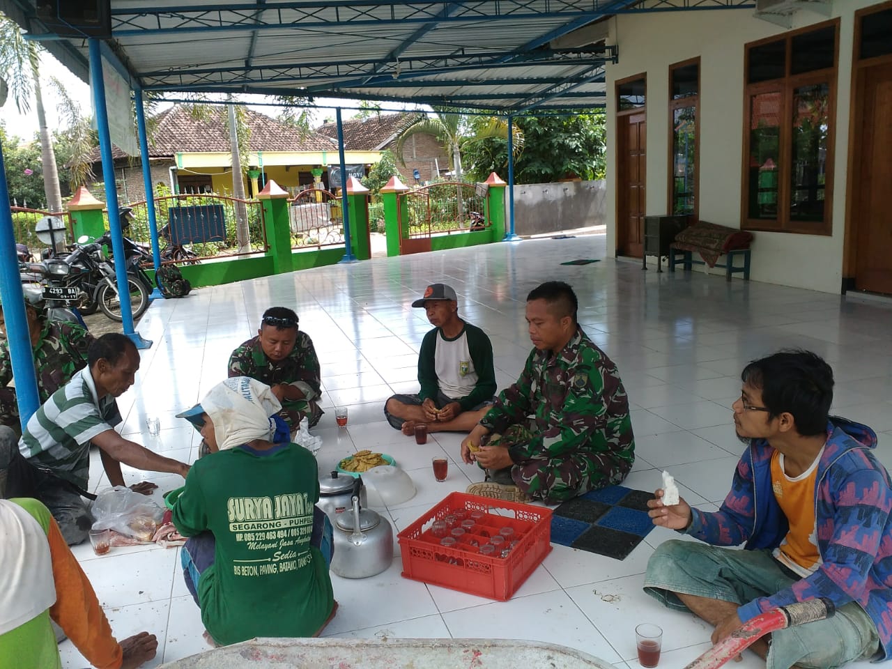 Sukoharjo (06/03/2019) – Kebersamaan tidak hanya pada saat berkerja, saat istirahat makan gorengan dan minum pun terlihat bersahaja ada canda tawa lepas Anggota Satgas dan warga. Serda Kurnia Anggota Satgas TMMD terlihat akrab dengan warga saat istirahat merehab Masjid Baituraman di Dukuh Brahu pada program TMMD ke-104 Kodim 0726/Sukoharjo di Desa Celep Kecamatan Nguter Kabupaten Sukoharjo,Rabu (06/03).