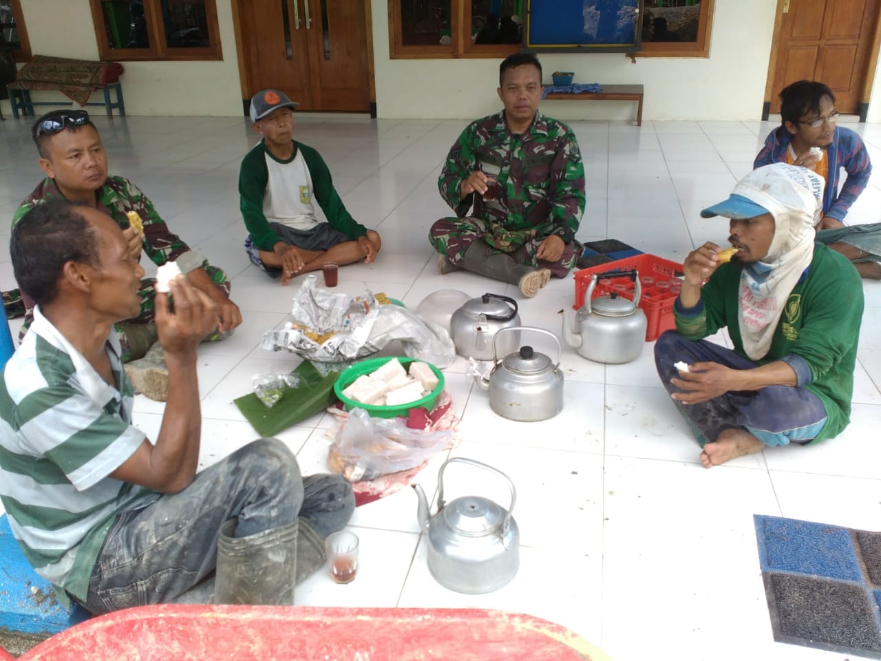 Suasana yang begitu akrab sambil menikmati makanan yang disediakan seadanya. Kurnia berharap ” kegiatan istirahat makan dan minum bersama warga mampu membuat suasana lebih akrab, dan bisa melepas lelah usai bekerja dalam kegiatan TMMD ini”, Ungkapnya.