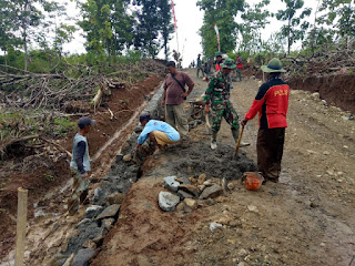 Sukoharjo (06/03/2019) – Dibawah pimpinan Letda Inf M. Makasim dan 20 orang anggotanya hari ini mengerjakan talud jalan yang menghubungkan desa Celep dengan  dukuh  Sambirejo. Bersama sama dengan warga desa bahu membahu, diselingi canda tawa menambah semangat dalam bekerja.