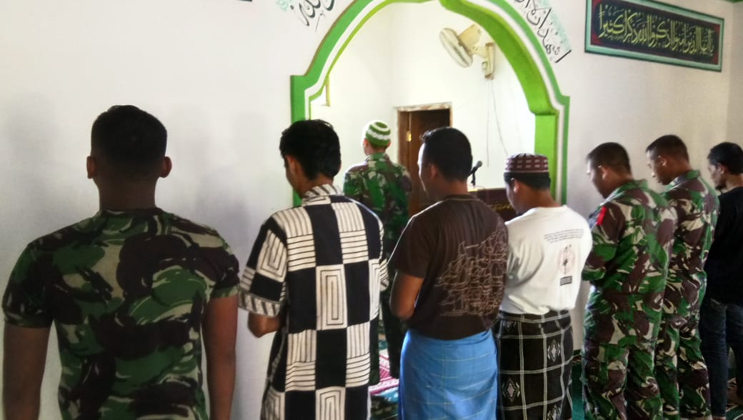 bekerja dan beribadah haruslah seimbang, oleh karenanya personil Satgas TMMD ke-104 tidak hanya melakukan aktivitas pekerjaannya semata tetapi juga melakukan kegiatan ibadah dan doa bersama masyarakat.