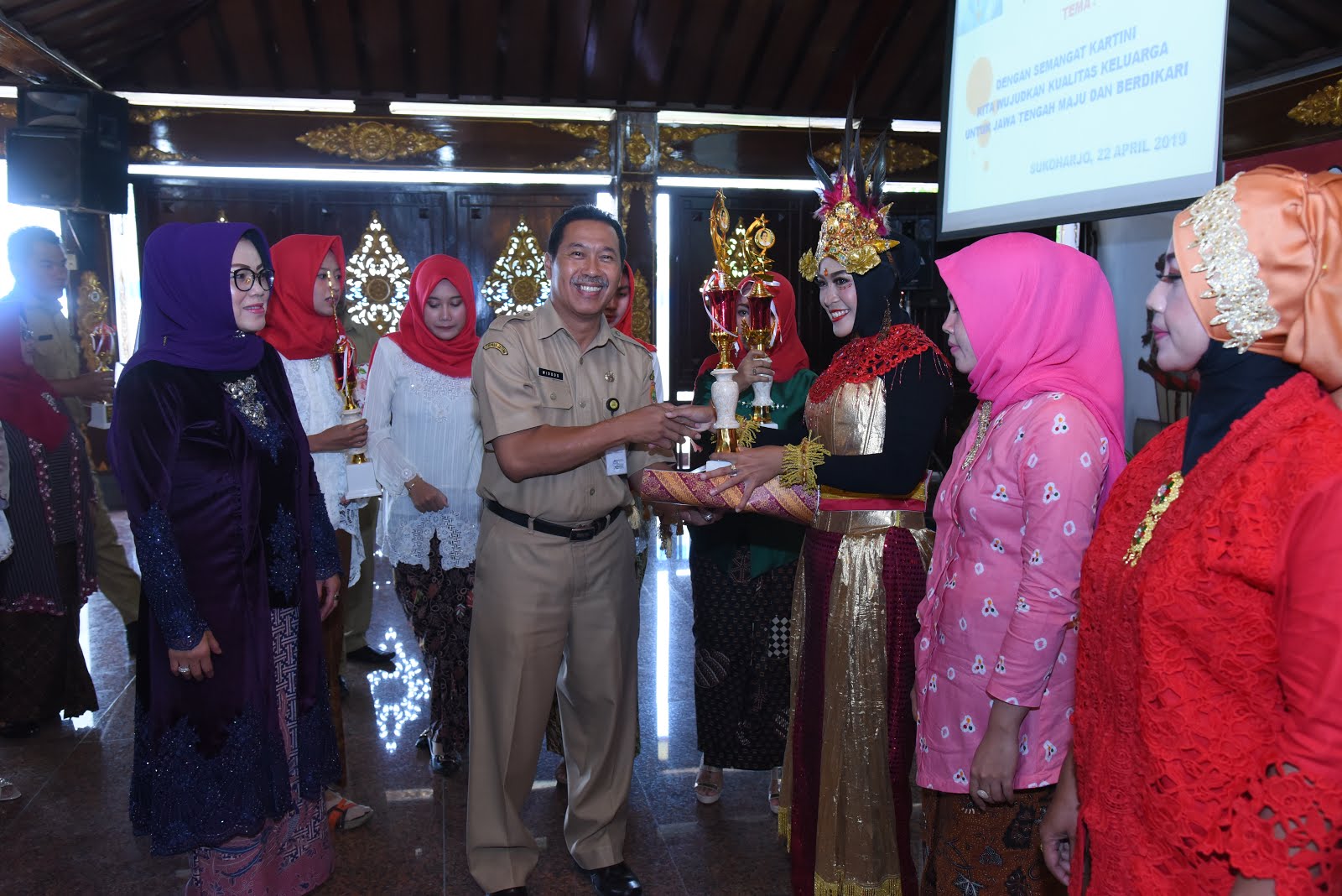 “Untuk Lomba Senam Maumere diikuti 22 peserta, sedangkan Lomba Kreasi Plastik diikuti 27 peserta. Tujuan kegiatan ini untuk mengenang melanjutkan dan mewujudkan cita cita Kartini dalam memajukan kaum perempuan. Banyak kegiatan yang diadakan dalam rangka peringatan Hari Kartini tahun 2019 antara lain lomba senam maumere dan lomba kreatif plastik. Adapun pemenang Lomba senam Maumere Juara I diraih Polres Sukoharjo, Juara II Bhayangkari Sukoharjo dan Juara III Persid Kartika Chandra Kirana Kodim 0726/Sukoharjo. Untuk Lomba kreatif Plastik Juara I diraih TP. PKK Kabupaten Sukoharjo, Juara II Dharma Wanita Persatuan Kabupaten Sukoharjo dan Juara III diraih Kecamatan Tawangsari, masing masing mendapatkan hadiah piala dan uang pembinaan,”jelasnya.