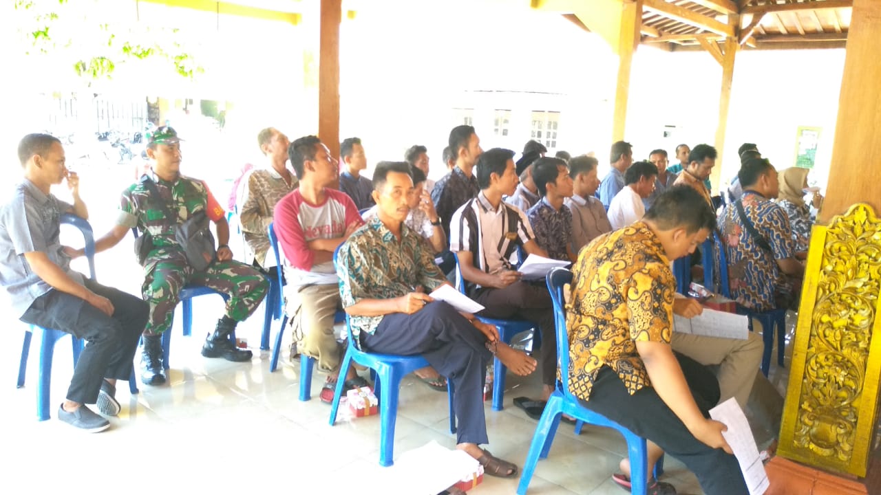 Sukoharjo (27/04/19) Babinsa Koramil 11 Polokarto wilayah desa Wonorejo, Serda Edi Nursenp pada hari Jumat tanggal 25 April 2019 pukul 09.00 s.d 10.35 Wib menghadiri undangan dan melaksanakan monitoring dan pengamanan kegiatan Sosialisasi Validasi BDT (Basis Data Terpadu) Desa Wonorejo Kec.Polokarto .