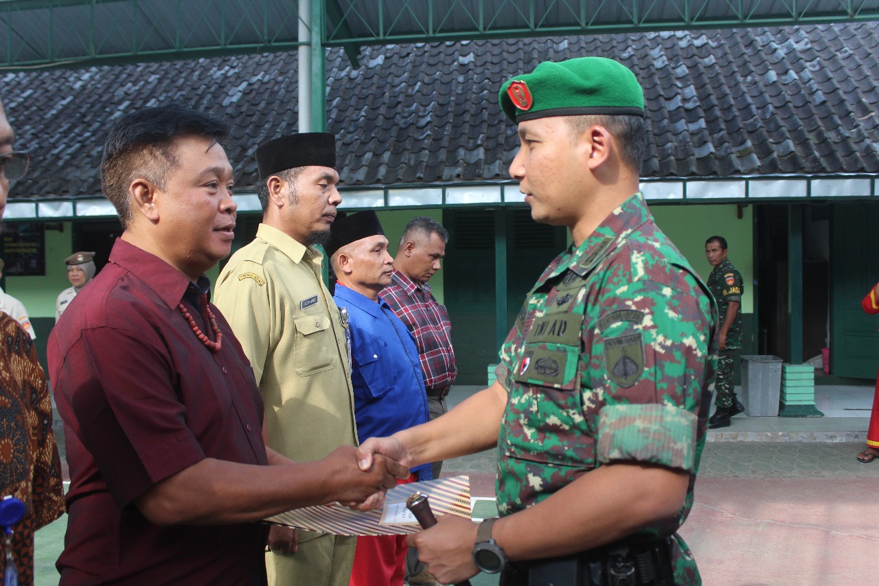 Sukoharjo (28/05/2019) – Bertempat di lapangan Bulu Tangkis (Ruang Serba Guna), Kodim 0726/Sukoharjo menggelar kegiatan penyerahan piagam penghargaan kepada pendukung TMMD Reguler ke-104 TA 2019 yang diserahkan langsung Dandim 0726/Sukoharjo Letkol Inf Chandra Ariyadi Prakosa, S.I.P, M.Tr(Han). Senin (27/05)