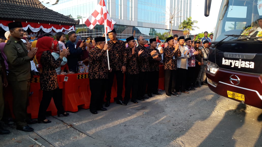 Di lokasi keberangkatan Jamaah Calon Haji pagi hari ini, tampak begitu ramai. Titik lokasi dipadati oleh keluarga dan kerabat dari para Jamaah Calon Haji yang ikut menghantarkan keberangkatan. Tangis haru dari keluarga dan para kerabat juga turut mewarnai keberangkatan Jamaah Calon Haji asal Kabupaten Sukoharjo tahun 2019.