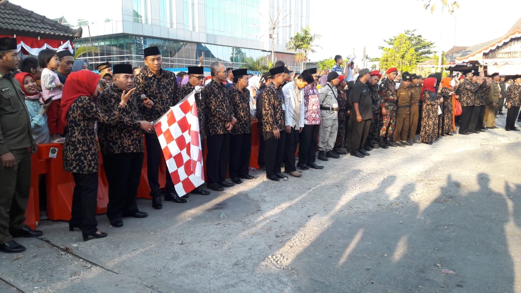 SUKOHARJO – Bupati Kabupaten Sukoharjo, H. Wardoyo Wijaya SH, MH melepas keberangkatan Jemaah Calon Haji (JCH) yang tergabung ke dalam kelompok terbang atau kloter 1 menuju Asrama Haji Donohudan Boyolali, Sabtu (6/7/), di Pendopo Graha Satya Praja ( GSP) Pemda Sukoharjo.