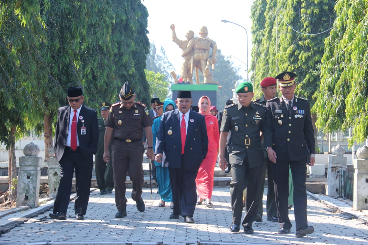 SUKOHARJO– Menjelang peringatan Hari Jadi ke-73 kabupaten Sukoharjo, Bupati Sukoharjo, H. Wardoyo Wijaya SH, MH, MM didampingi Ketua TP.PKK Hj. Etik Suryani SE.,MM bersama jajaran Forkopimda berziarah dan tabur bunga ke Taman Makam Pahlawan (TMP) Kusuma Bhakti Jurug Surakarta, dimana pada taman makam pahlawan tersebut disemayamkan mantan Bupati Sukoharjo yang pertama yaitu KMRT Soewarno Honggopati Tjitrohoepojo, Rabu (10/7).