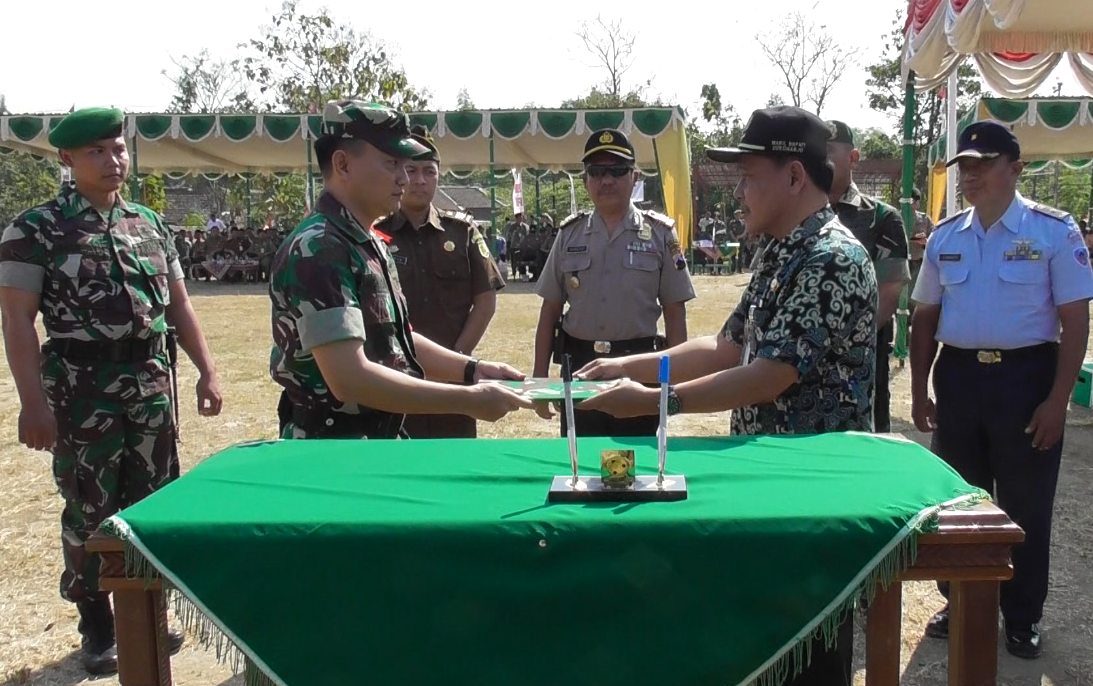 Dilanjutkan penandatanganan naskah program TMMD antara Bupati Sukoharjo yang diwakili oleh Wakil Bupati dengan Dandim 0726/Sukoharjo yang diwakili oleh Kasdim 0726/Sukoharjo selaku Dansatgas dilanjutkan penyerahan program TMMD kepada Dansatgas. Dalam Naskah tersebut memuat tentang pekerajaan yang di laksaanakan meliputi Sasaran Fisik Pokok