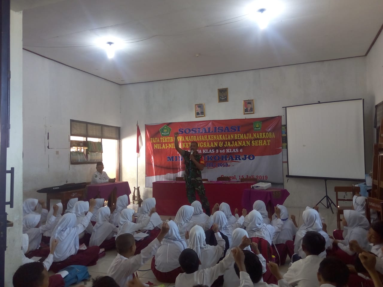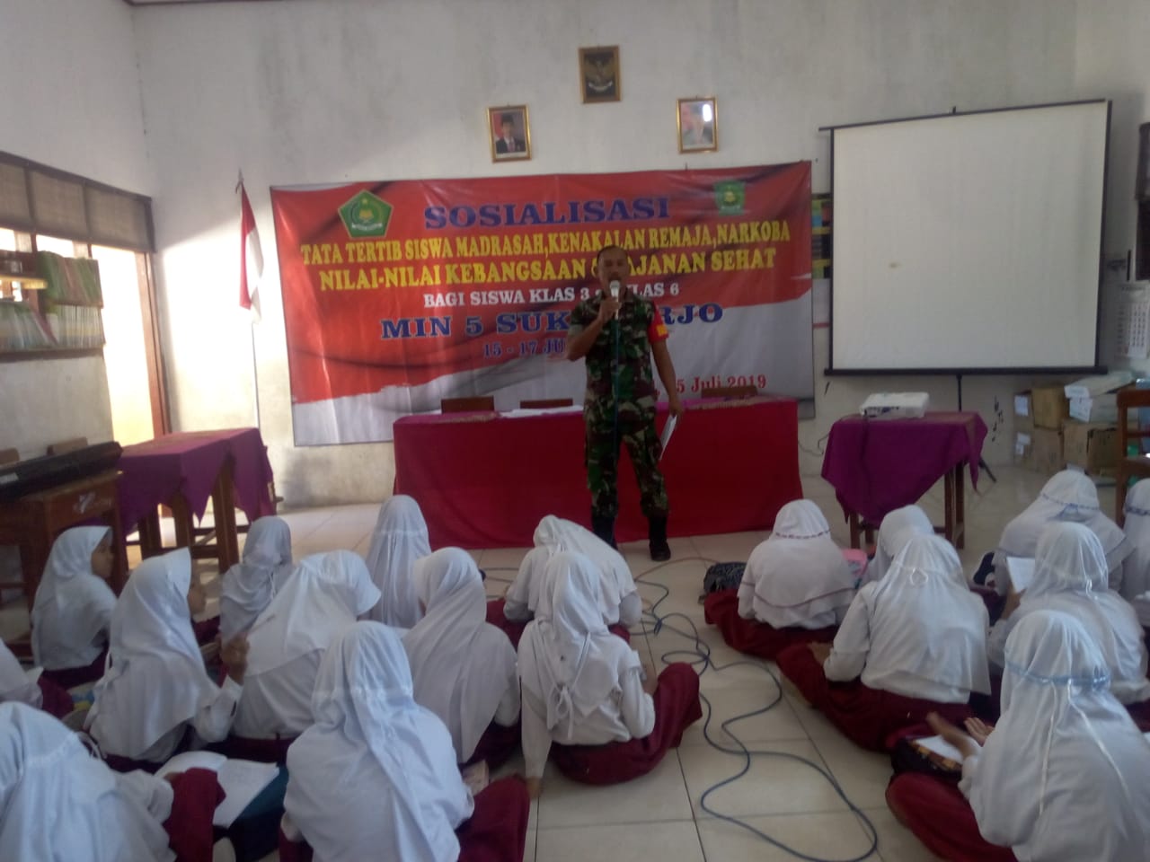Sukoharjo (17/07/19) Pada hari Selasa (16/07) pukul 09.00 s.d 11.15 wib bertempat di MI 5 desa Grogol Kecamatan Weru, Sukoharjo Serka Rubimin Babinsa Ramil 05 Weru memberikan Pembekalan Wawasan Kebangsaan dan Cinta Tanah Air, dalam rangka masa pengenalan lingkungan siswa,tahun ajaran 2019/2020.