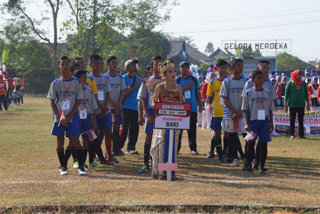 Hadir dalam kegiatan itu,  Ketua TP. PKK Sukoharjo Hj. Etik Suryani SE., MM , Jajaran Dinas Pendidikan dan Kebudayaan serta Tim GSI SMP dari 12 Kecamatan, Perwakilan Bank Jateng, group drum band, pasukan pedang pora, pendamping, pelatih, guru PJOK SMP se Kabupaten Sukoharjo serta para supporter.