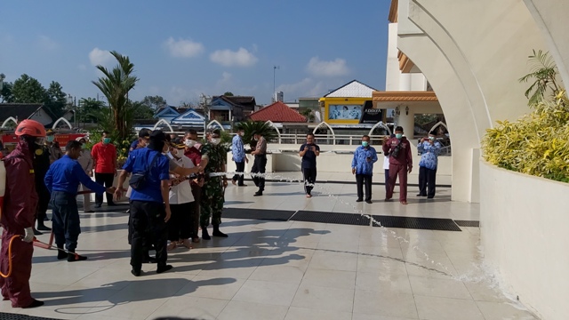 SUKOHARJO- Bupati H. Wardoyo Wijaya SH, MH, MM bersama Forum Koordinasi Pimpinan Daerah(Forkopimda) melakukan gerakan pembersihan Masjid Agung Baiturrahmah Sukoharjo,Selasa (17/3). Hal itu dilakukan dalam upaya pencegahan penyebaran virus Coronadi tempat ibadah.”Sebenarnya sejak isu virus Corona muncul, TakmirMasjid sudah berinisiatif dengan melakukan pembersihan masjid, baik di dalammaupun luar masjid,” ujar Ketua Takmir Masjid Agung Baiturrahmah Sukoharjo,Yazid Anwari.Pembersihan tersebut dilakukan seperti mengepellantai dua kali sehari pagi dan sore, dan membersihkan karpet. Selain itu,takmir juga menyediakan hand sanitizer di sejumlah titik di pintu masuk maupundi dalam ruangan masjid. “Kalau penyemprotan disinfaktan baru sekali ini olehPemkab, saya harap tidak hanya sekali saja,” ujar Yazid.Sekretaris Takmir Masjid, Wiyono menambahkan, selamapencegahan penyebaran virus Corona, takmir masjid membatalkan semua agendapengajian untuk sementara. Termasuk pengajian akbar bersama AA Gym yangseharusnya digelar 15 Maret lalu. Selain itu, pengajian rutin setiap malamSelasa, Kamis, dan malam Sabtu untuk sementara juga ditiadakan. Saat ini,pengajian yang ada hanya setiap Jumat saja.”Kalau Aa Gym massanya kan banyak sehingga massanya,dengan alasan Corona, terpaksa pengajian dibatalkan,” ujarnya.Sedangkan Bupati Sukoharjo, H. Wardoyo Wijaya SH, MH,MM Â menyampaikan, kegiatan bersih-bersihmasjid agung dilakukan bersama Forkopimda. Selain masjid agung, gerakanbersih-bersih juga dilakukan di Pasar Ir Soekarno. Tim bersih-bersih tersebutdibagi di dua lokasi tersebut. “Setelah bersih-bersih hari ini akan diteruskandi tingkat kecamatan yang rencananya dilakukan pada hari Jumat nanti secaraserentak,” ujar Bupati.Demikianinformasi yang disampaikan Kabag Protokol dan Komunikasi Pimpinan SetdaKabupaten Sukoharjo Drs. Joko Nurhadiyanto EN, M.Hum.(Tj)
