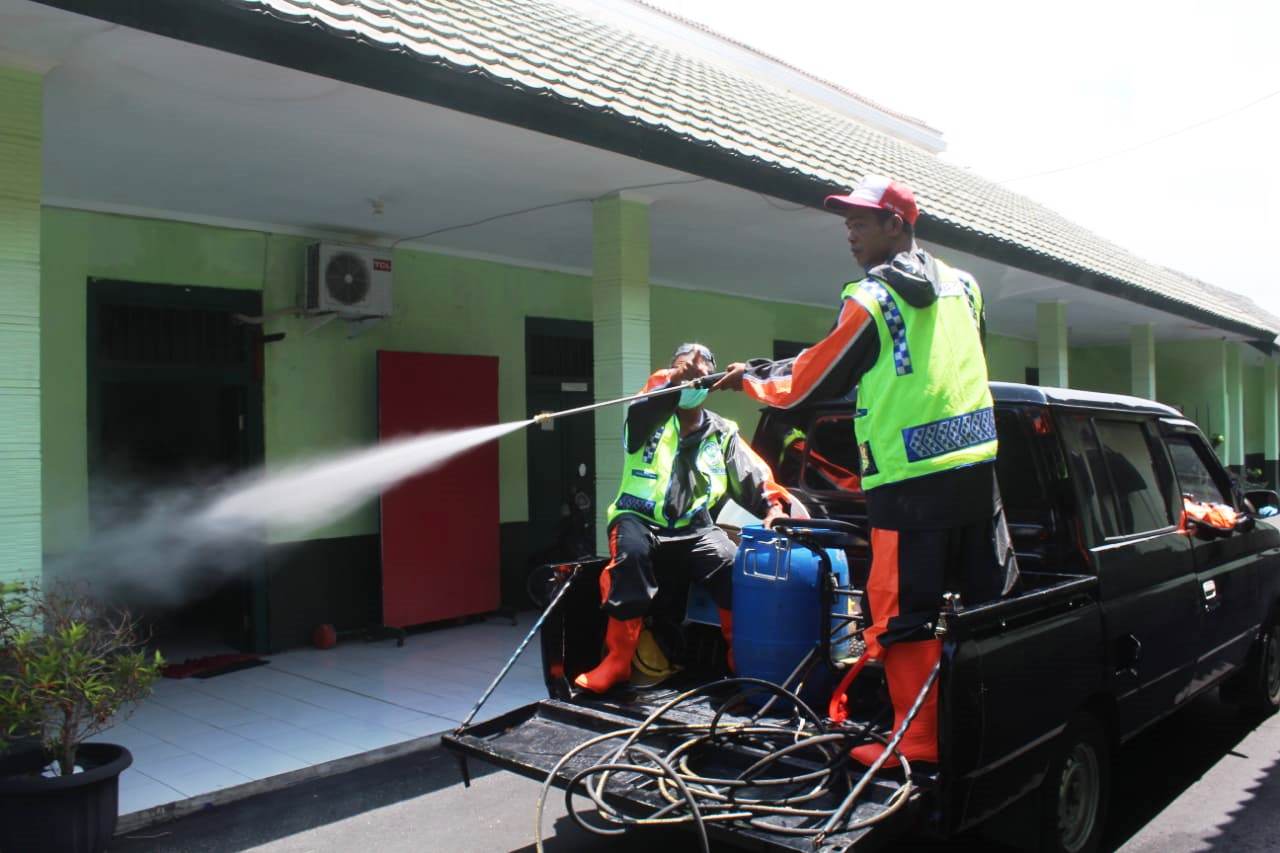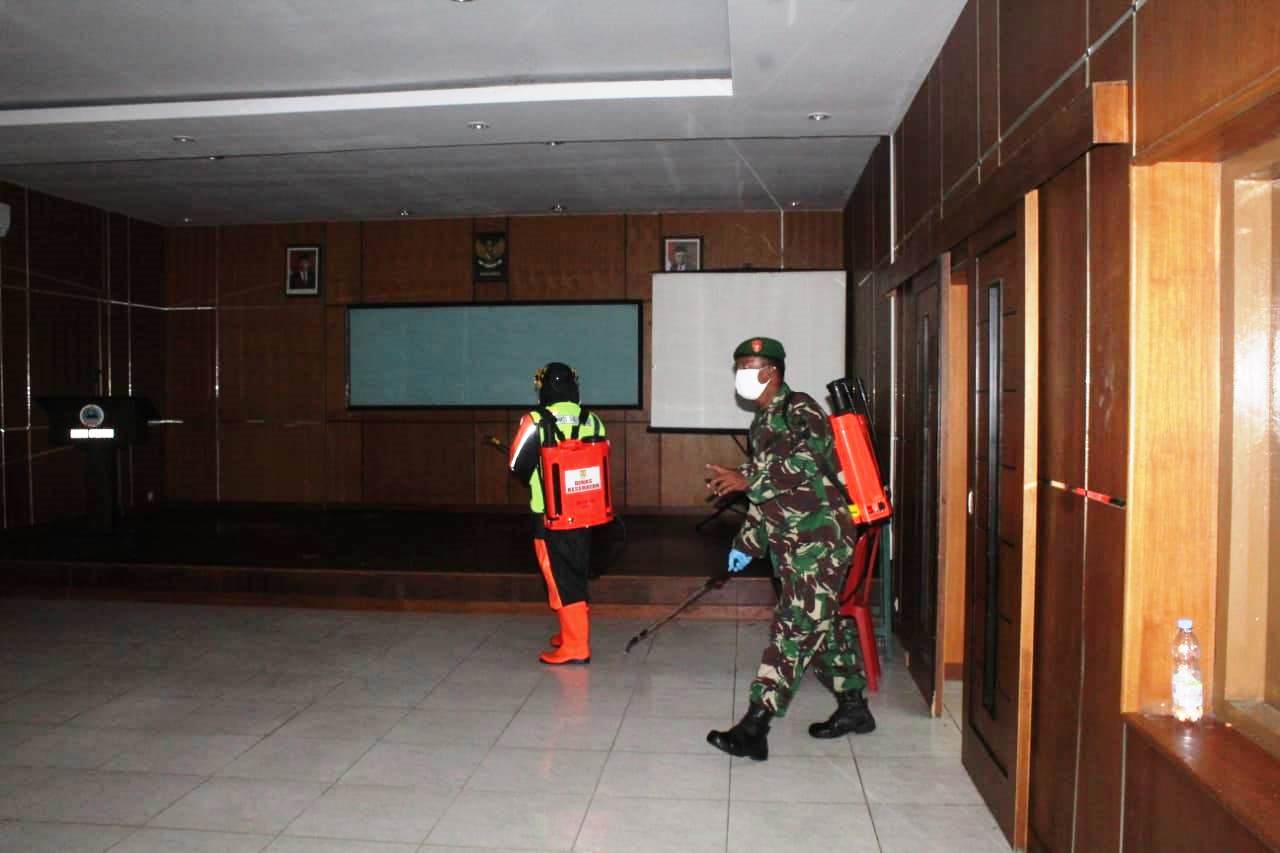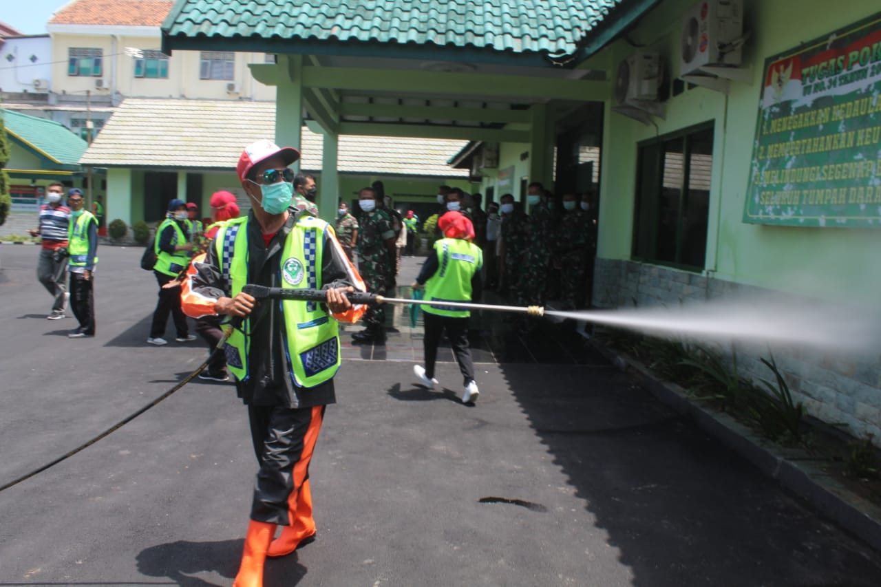 Cegah Covid 19 Makodim 0726/Sukoharjo di Semprot Disinfektan
