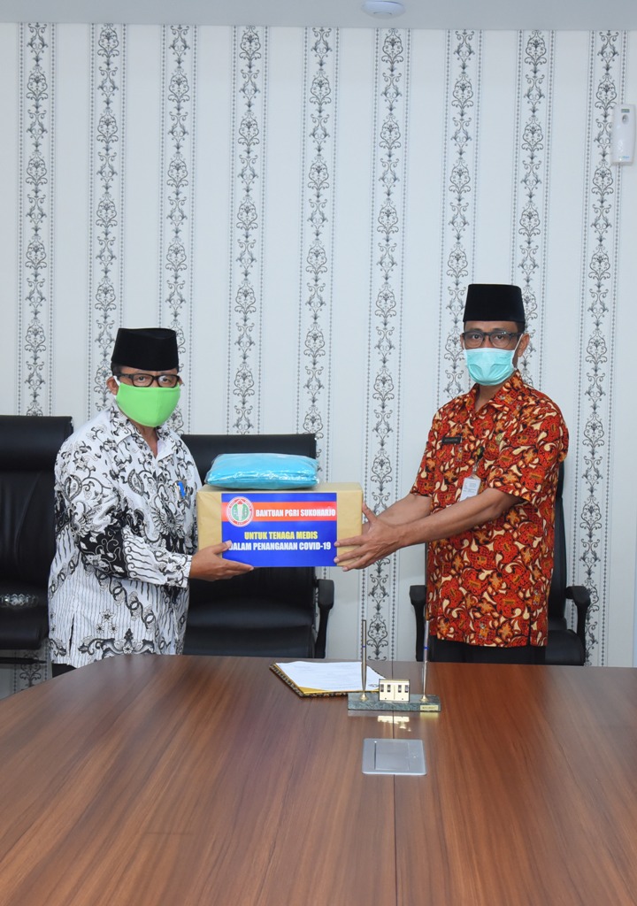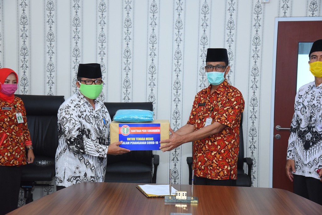 SUKOHARJO– Wujud kepedulian terhadap dampak wabah virus corona (Covid-19), Persatuan Guru Republik Indonesia (PGRI) Kabupaten Sukoharjo memberikan bantuan kepada Gugus Tugas Percepatan Penanganan Covid-19 Kabupaten Sukoharjo berupa Masker N 95 200 buah, APD Cover all 300 potong dan Apron 200 pcs.