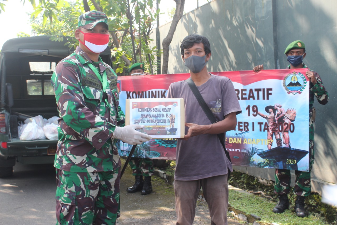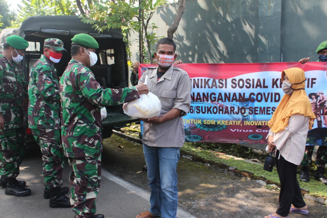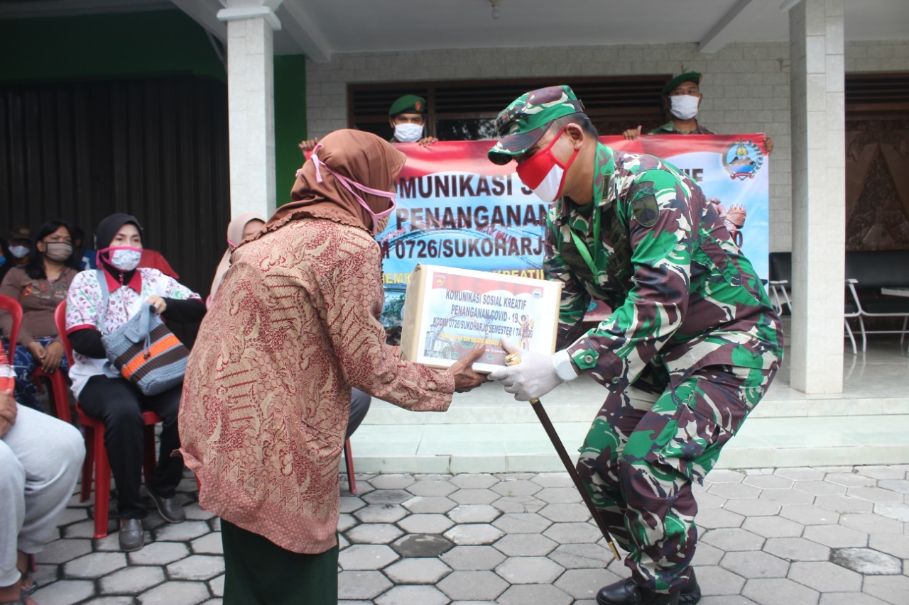 Sukoharjo (22/04/20) Menyikapi perkembangan pandemi virus covid-19 yang berdampak kepada seluruh sendi masyarakat di Sukoharjo, Kodim 0726/Sukoharjo berinisiatif menggelar Bakti Sosial, pada hari Rabu (22/04).
