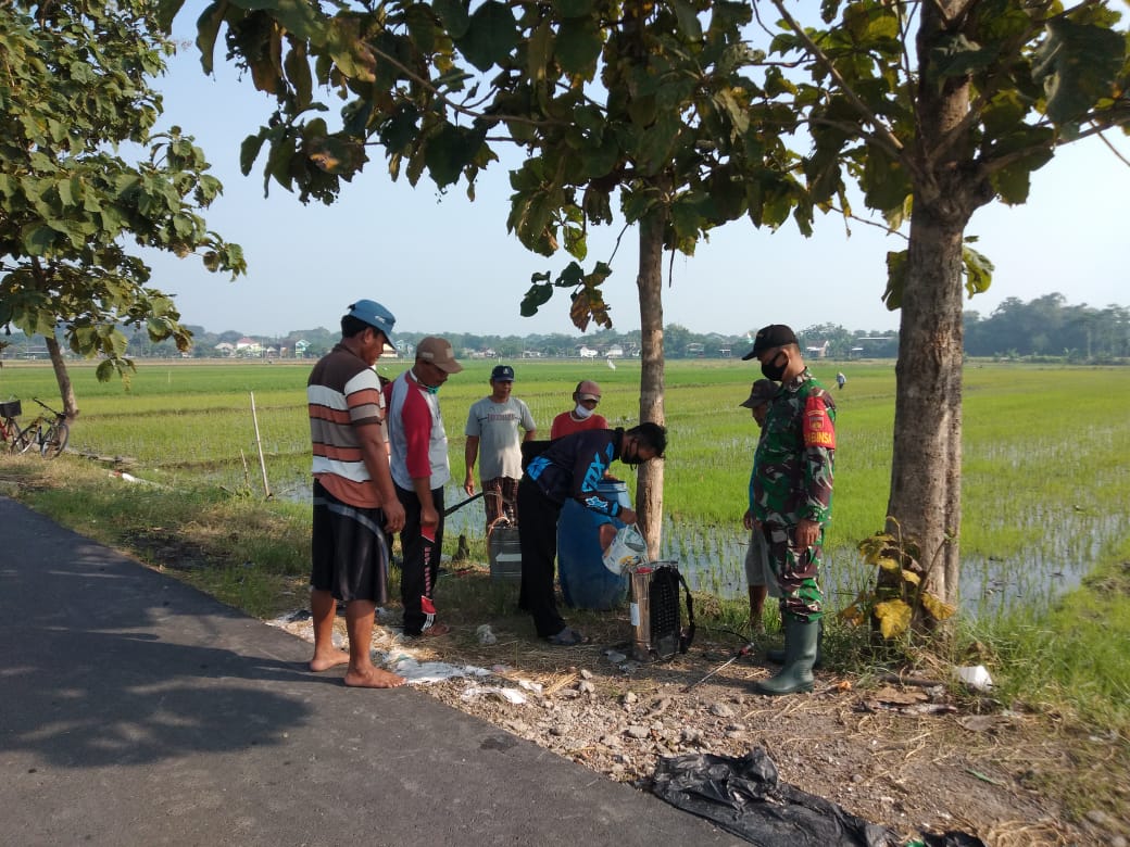 Tak terkecuali Babinsa Koramil 06 Serka Heri Budi tetap mendampingi masyarakat dalam meningkatkan ketahanan pangan masyarakat melalui pendampingan kegiatan petani di wilayahnya. Hari Kamis (23/04) Babinsa Serka Heri Budi membantu petani di desa Pucangan, Kartasura, Sukoharjo membantu pengendalian hama padi dalam rangka meningkatkan hasil pertanian.