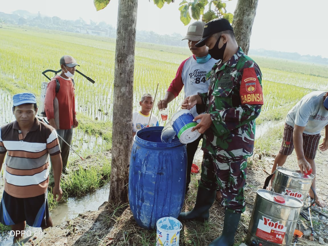“Tidak hanya menghadapi pandemi Covid-19, petani saat ini juga menghadapi hama wereng yang menyerang lahan sawah. Untuk itu, kami bersama-sama akan terus berupaya membantu petani dalam mengatasi permasalahan tersebut, demi terciptanya ketahanan pangan di wilayah,karena ketahanan pangan merupakan faktor terpenting dari ketahanan negara,” Kata Babinsa.