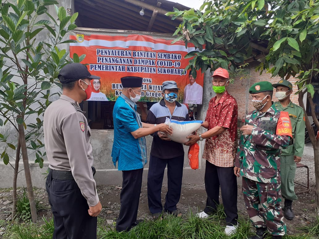Dalam kesempatan tersebut Bupati Sukoharjo selalu aktif menyempatkan diri meninjau pendistribusian paket sembako di lapangan, salah satunya di desa Grogol, Kecamatan Grogol, Kabupaten Sukoharjo. “Saya minta yang dobel segera dicoret dan diganti dengan warga lain yang belum dapat apa-apa. Ini bantuan untuk rakyat jadi jangan main-main,” tegas bupati. Bupati meminta agar data benar-benar divalidasi sebab pembagian itu sudah berdasarkan by name by address berdasarkan data DTKS yang digunakan dasar pembagian sembako (JPS).