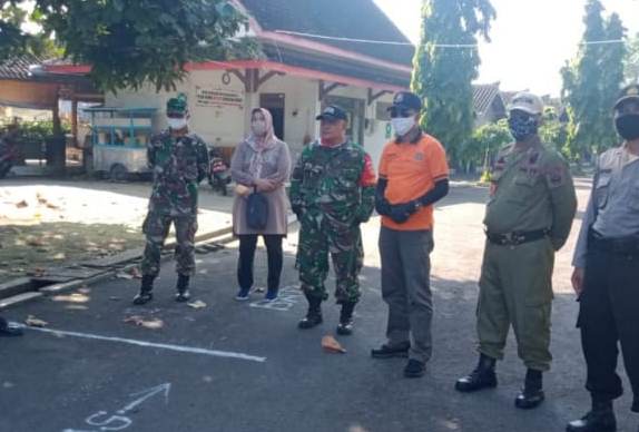 Sukoharjo (18/05/2020) Bertempat di pasar Gawok Kecamatan Gatak, Sukoharjo, kembali Koramil 07 Gatak bekerja sama dengan Dinas Kesehatan, Polsek dan Satpol PP menertibkan pasar Gawok sekaligus melaksanakan penyemprotan disinfektan dalam rangka memutus mata rantai penyebaran covid-19 di wilayah kecamatan Gatak, Sukoharjo.