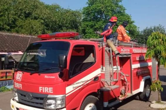 ANGGOTA KORAMIL GATAK BANTU PETUGAS SEMPROT DISINFEKTAN PASAR GAWOK